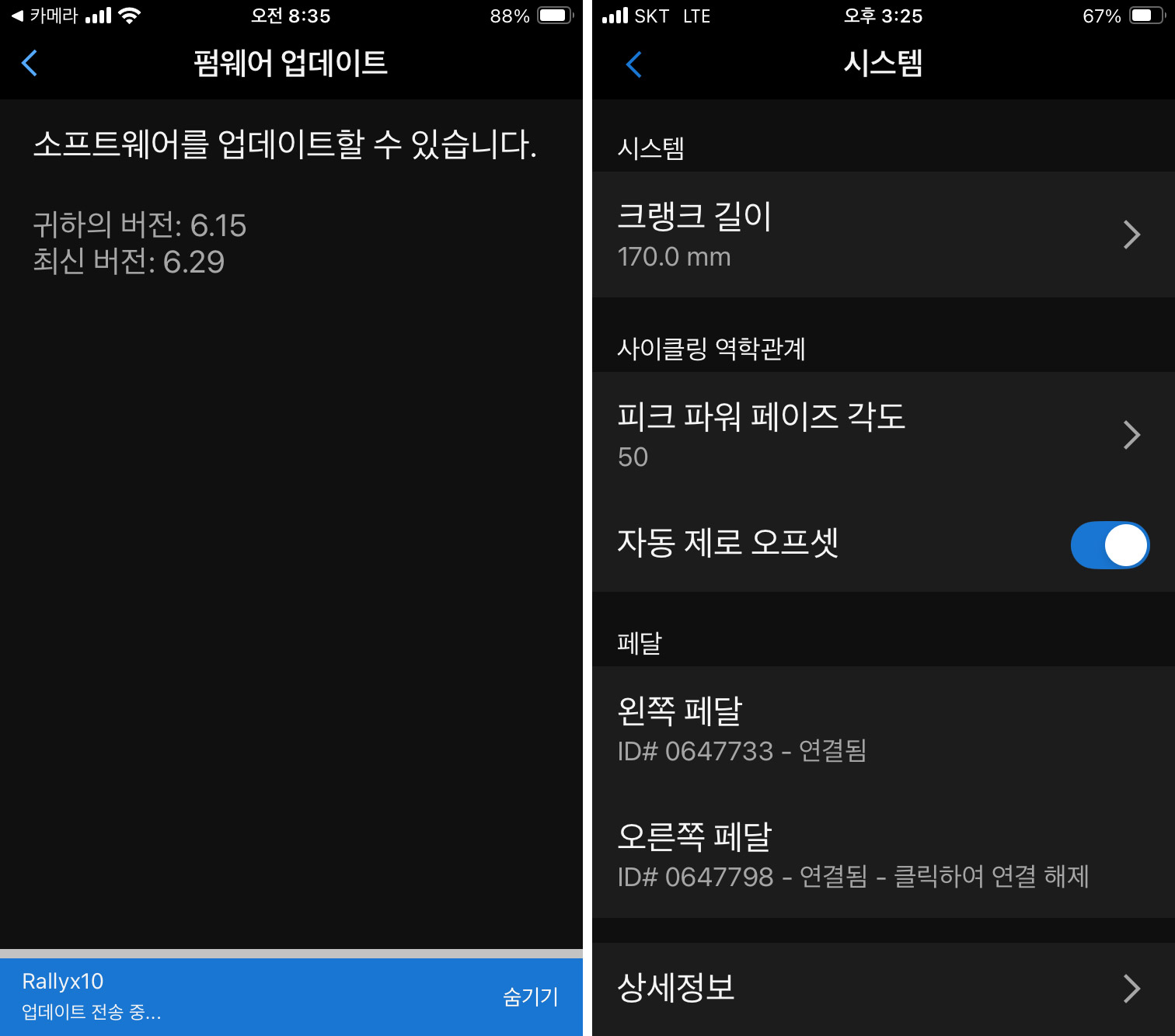 소프트웨어 업데이트 뿐 아니라 다양한 설정이 가능하며, 크랭크 길이는 정확하게 입력해야 한다.