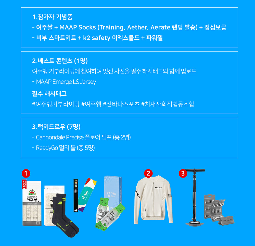 산바다스포츠가 주최하는 '2025 여주행 기부라이딩'이 오는 11월 8일(토) 개최를 앞두고 라이더들의 뜨거운 관심을 모으고 있다. 매년 가을 건강한 기부 문화 참여와 라이딩의 즐거움을 결합해 열리는 이 특별한 이벤트는 경기도 여주의 아름다운 자전거길과 업힐 코스를 그룹으로 함께 달리는 방식으로 진행된다.