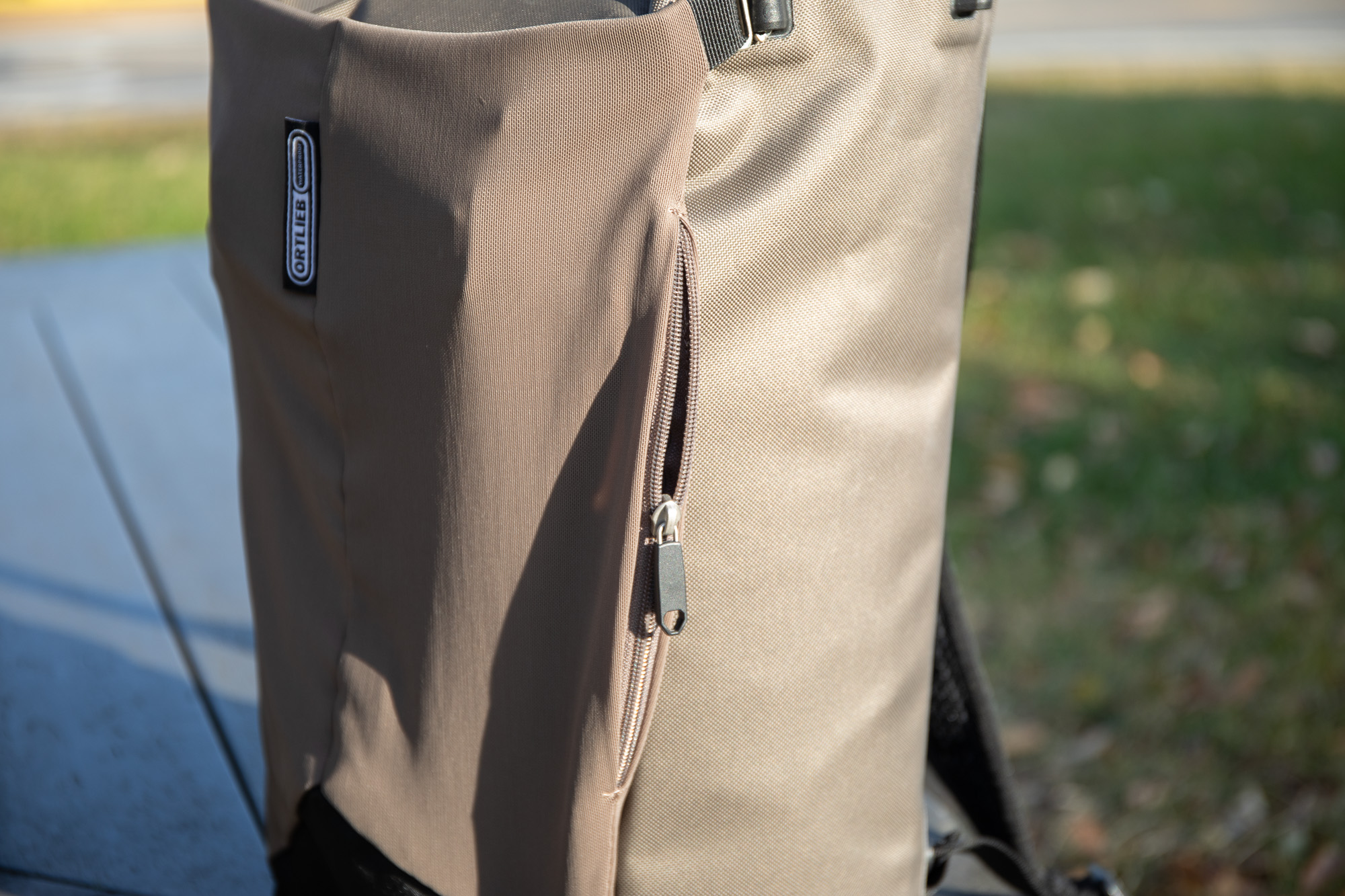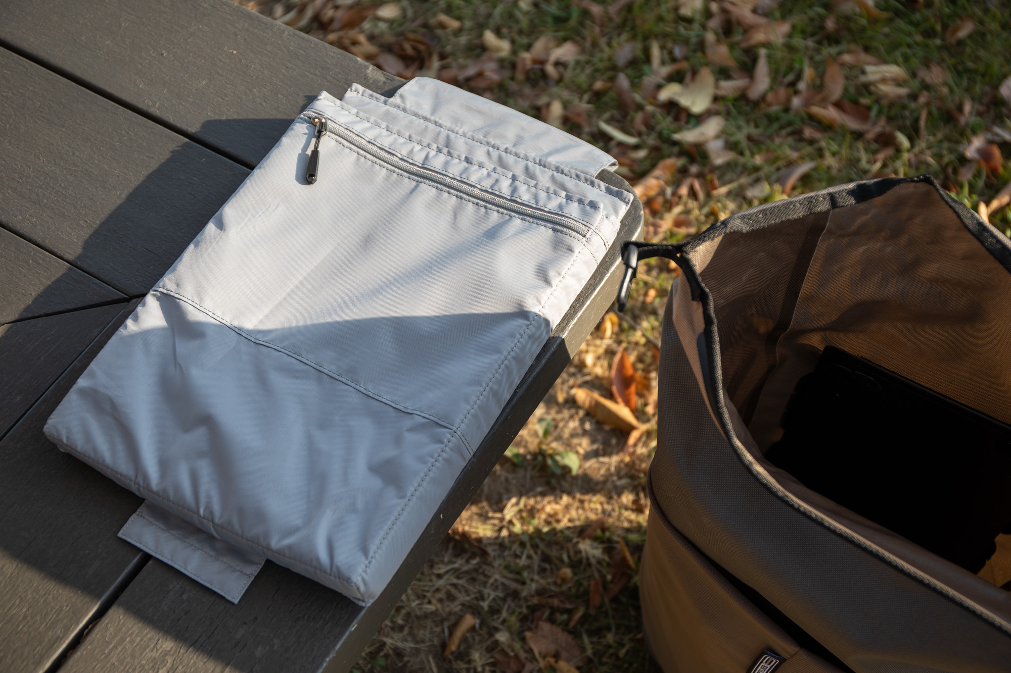 플랩은 신축성이 좋은 소재여서 방수가 지원되지 않지만, 옆에 지퍼 포켓이 있어서 간단하게 활용할 수 있다.