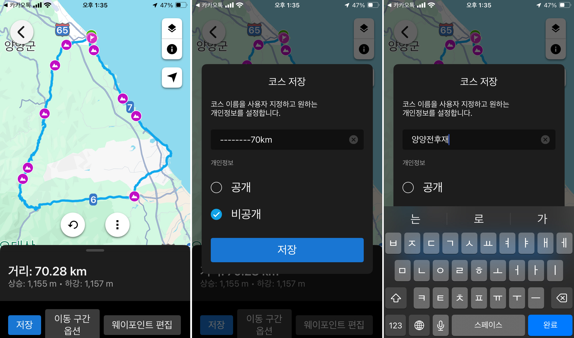 [저장] 버튼을 누르면 코스 이름을 수정할 수 있다. FIT 파일은 한글 오류가 있어서 수정이 필요하다.