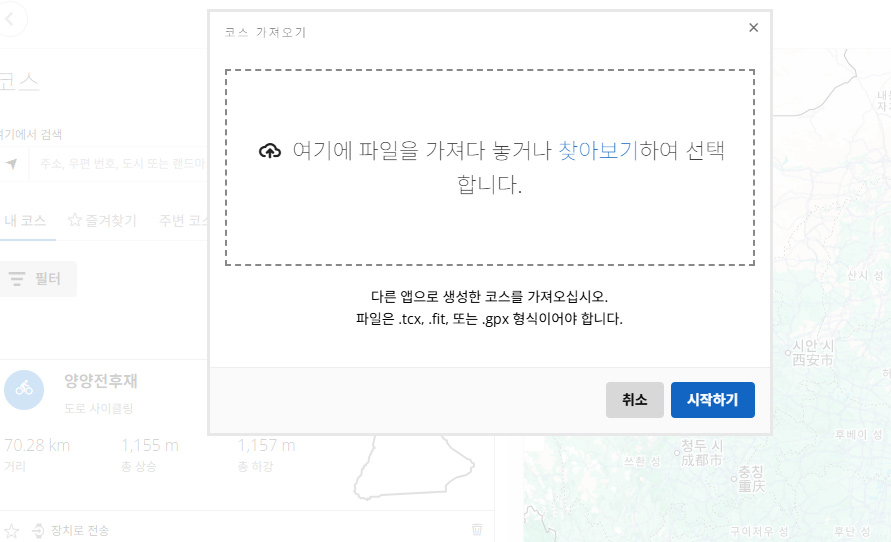 [가져오기] 버튼을 누르면 코스 파일을 찾아서 넣을 수 있다.