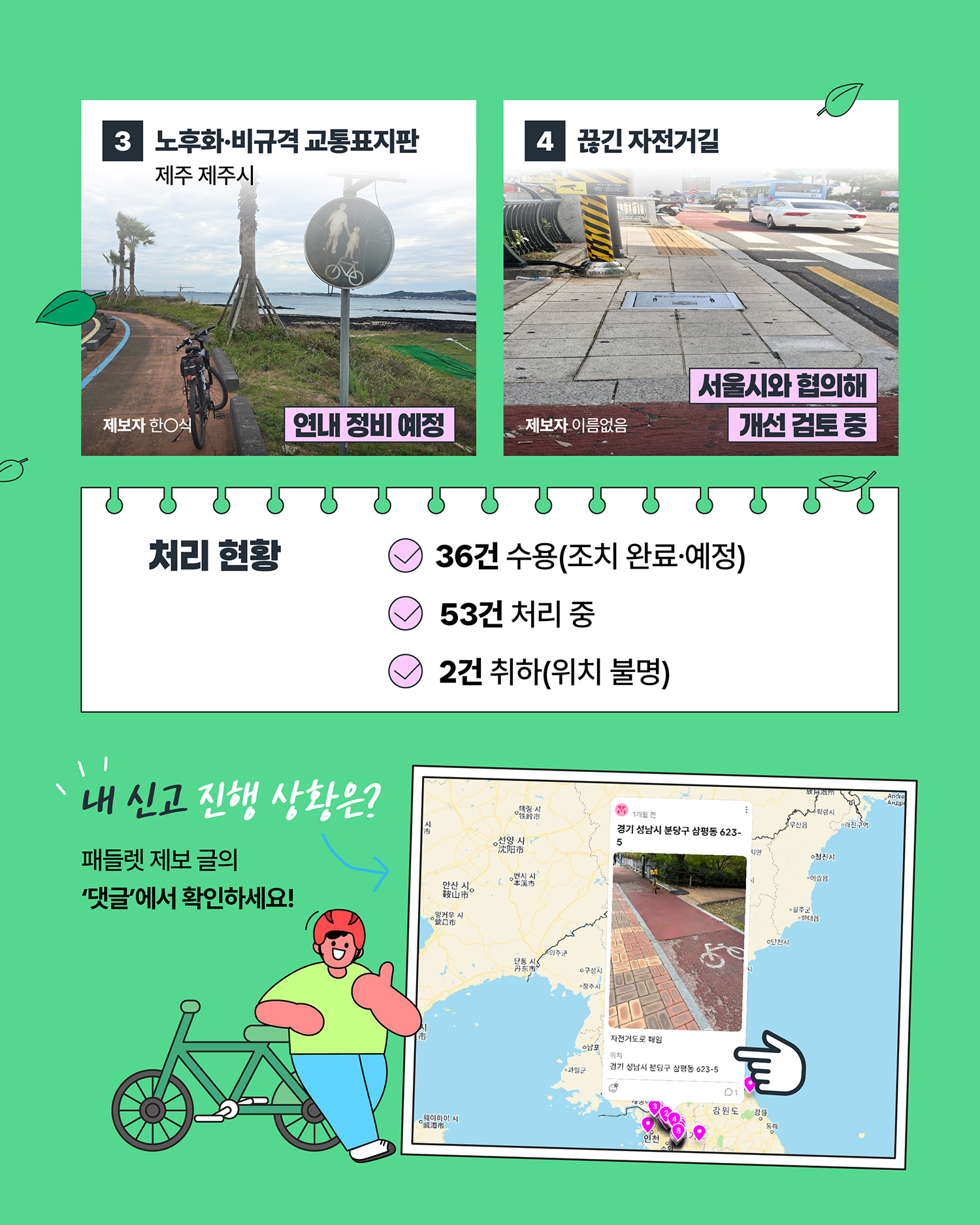이러한 활동은 자전거 이용자들이 일상에서 겪는 위험 요소를 직접 찾아내 개선을 요구함으로써, 더 안전한 라이딩 환경 조성에 기여하고 있다는 평가다.