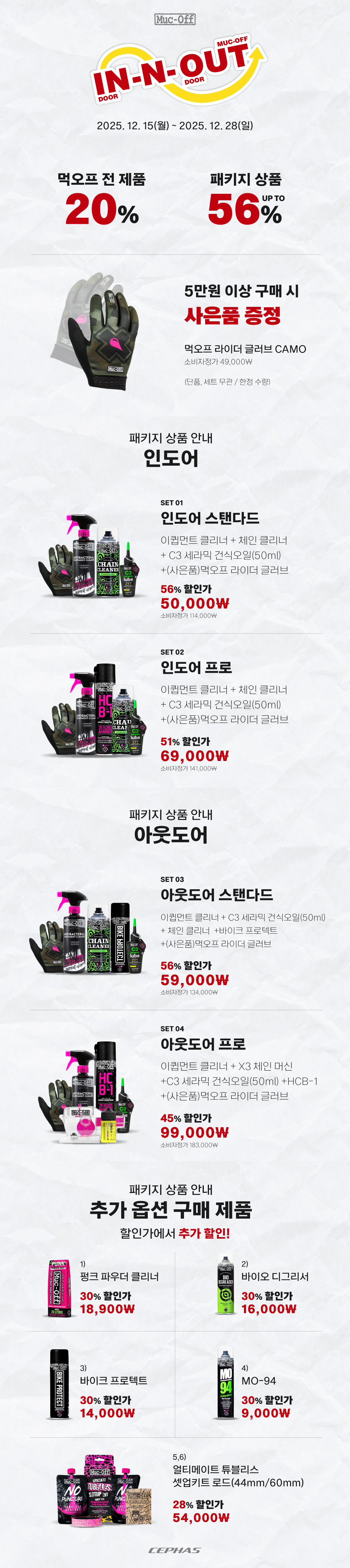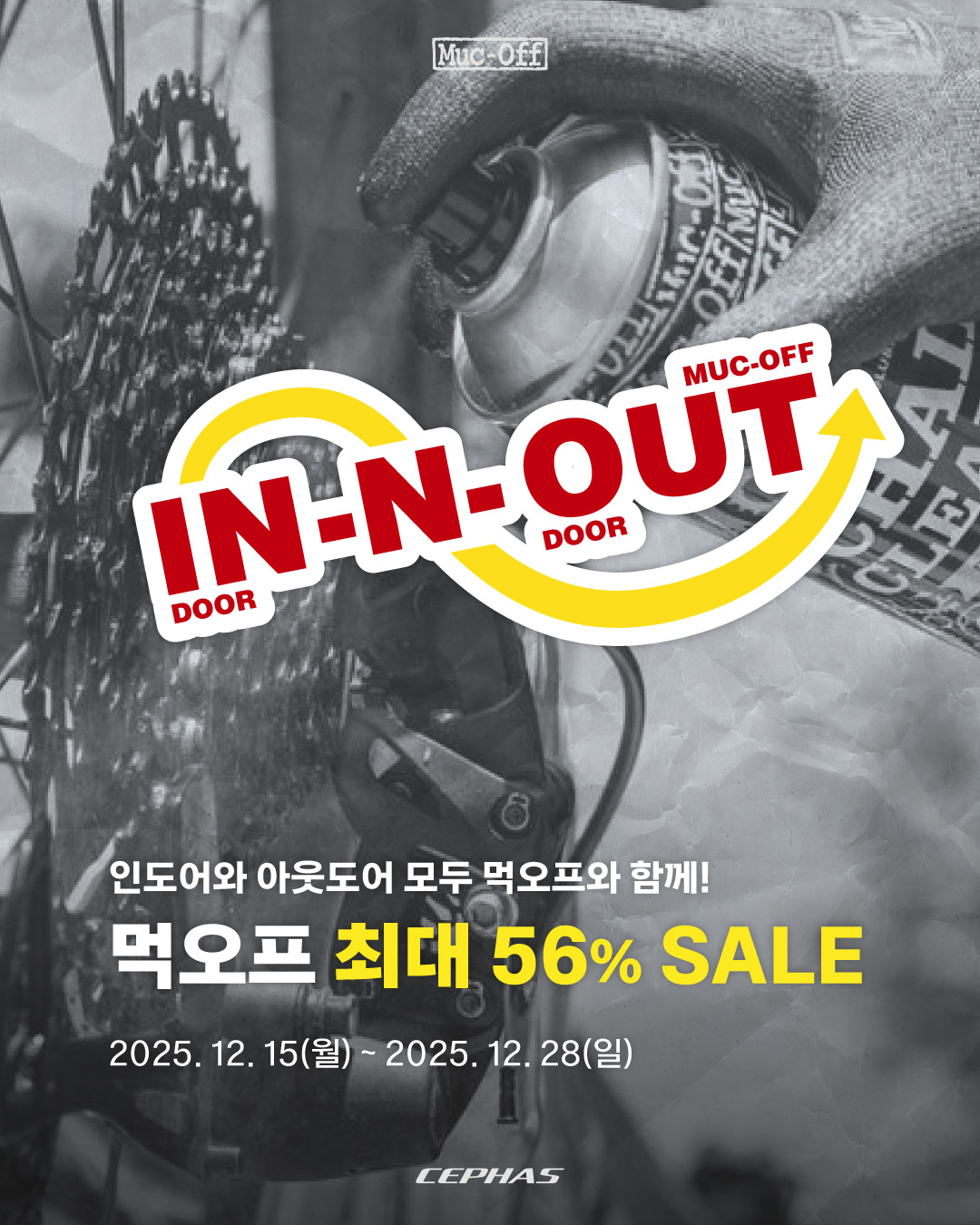 프리미엄 자전거 케미컬 및 용품 브랜드 먹오프(Muc-Off)가 겨울 시즌을 맞아 'In-N-Out(인 앤 아웃)' 프로모션을 12월 15일부터 오는 28일까지 진행한다.