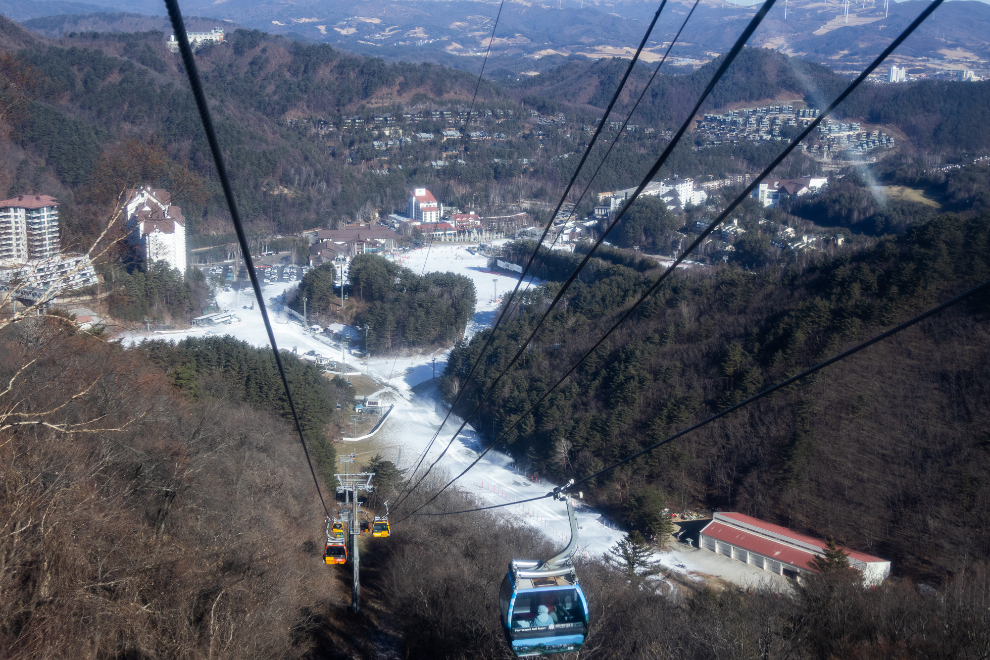 발왕산 정상에서 출발하는 레인보우 슬로프가 다운힐 코스로 개발되었다.