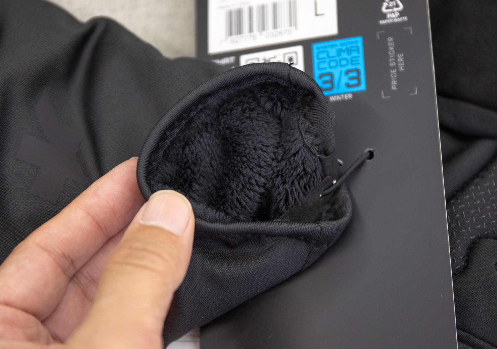 외부는 패딩처럼 보온성을 높이면서, 장갑 내부에서 부드러운 라이너를 이용해 손가락을 각각 따로 감싸는 구조이기 때문에, 더욱 강력한 보온 기능이 발휘된다. 또, 방풍 및 발수 기능을 적용해 장갑 내부가 쾌적하게 유지되도록 했다.