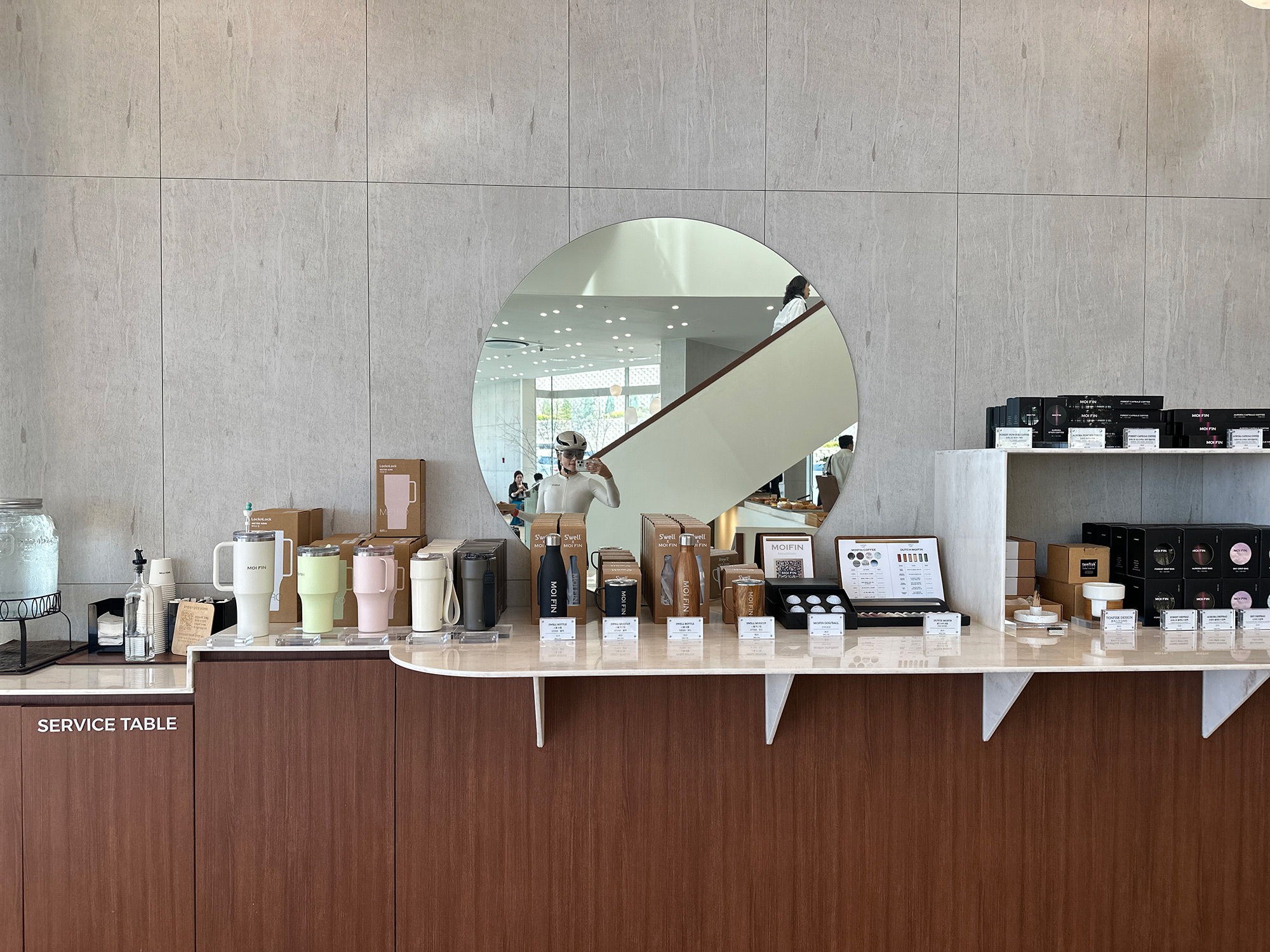 오션뷰 카페 컨셉에 맞춰 모이핀 선라이즈, 오션 레몬에이드 같은 시그니쳐 음료가 있고, 지역 특산물을 활용한 스위트콘 크림라떼나 적색고구마 라떼, 인삼 음료 등이 시즌별 음료로 제공되는 것 같았다.