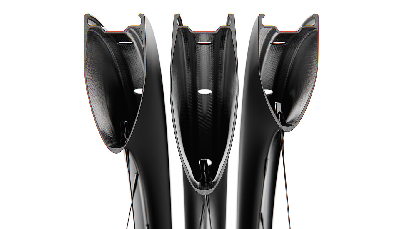 또한, 전륜 스포크 개수를 20개로 줄이고 공기역학적으로 최적화된 스포크를 배치하여 회전 저항을 감소시켰다. 특히 55mm 모델의 경우 10도의 측면 각도에서 약 12%의 회전 저항 감소 효과를 보였다.