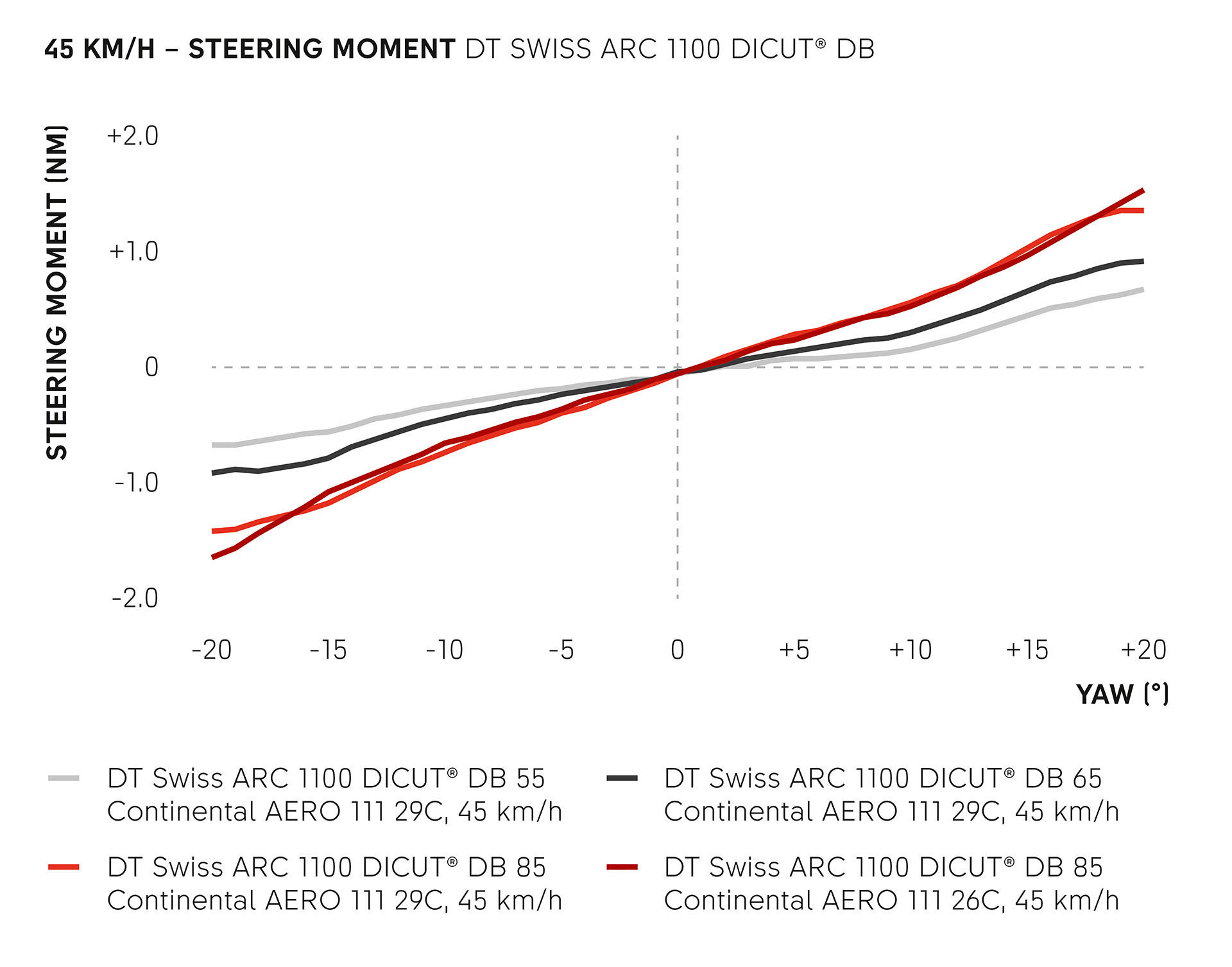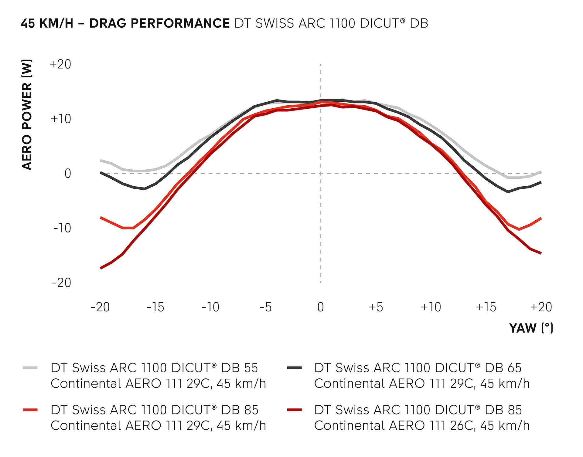 ARC 1100 DICUT DB: 180 다이컷(DICUT) 허브(세라믹 베어링)와 DT 에어로라이트(aerolite) 스포크가 적용되었으며, 65mm 모델 기준 전작 대비 158g 가벼워진 1,511g의 무게를 자랑한다.