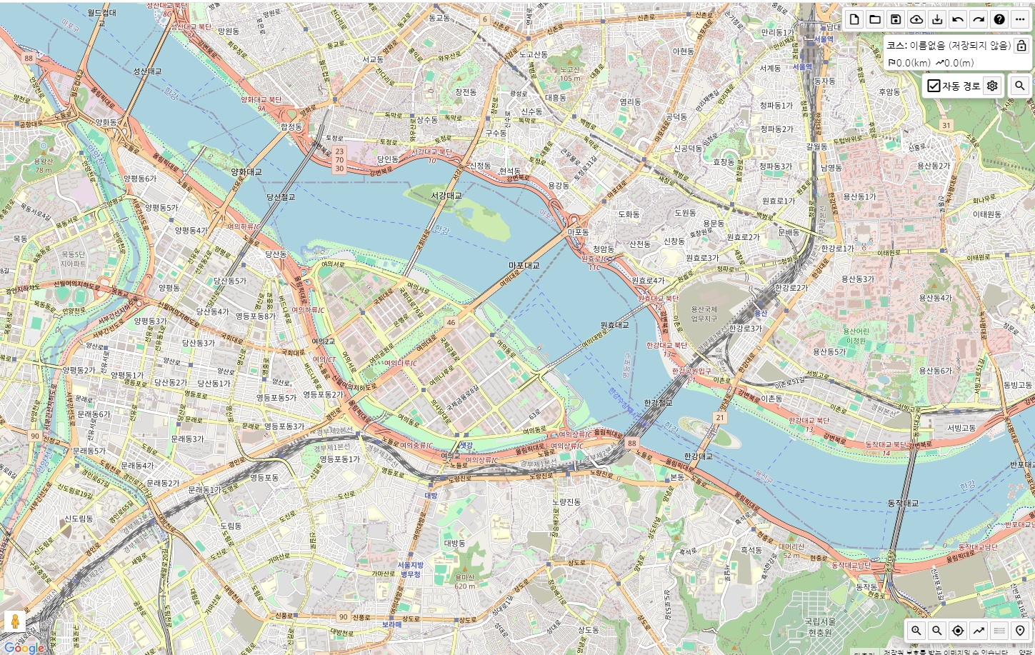 라이딩가즈아 사용법과 비슷하지만, 경로 포인트를 이동하여 루트 수정이 가능하다.