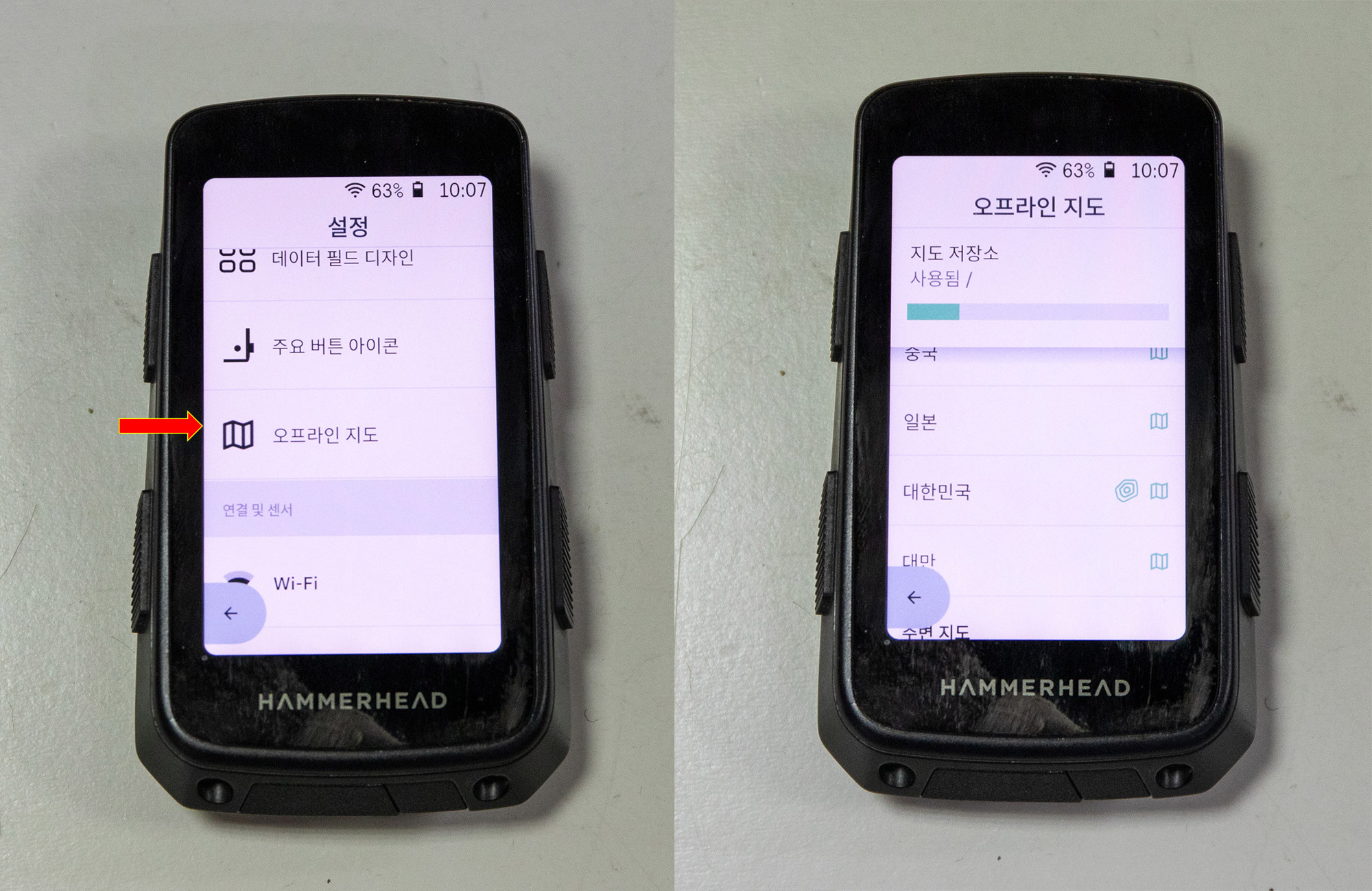 와이파이가 연결된 상태에서 해머헤드를 켜면 경로 목록에 바로 표시되고,
