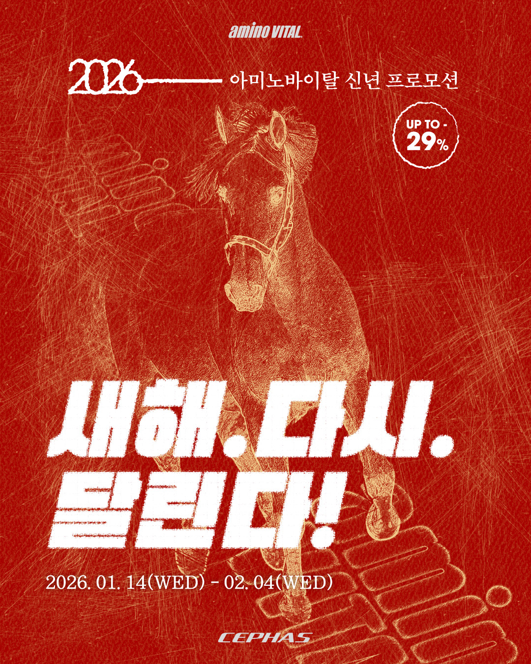 스포츠 영양 보충제 전문 브랜드 아미노바이탈(Amino Vital)이 2026년 새해를 맞아 운동 동호인들의 퍼포먼스 향상과 컨디셔닝을 지원하기 위한 '새해. 다시. 달린다!' 신년 프로모션을 전격 실시한다.