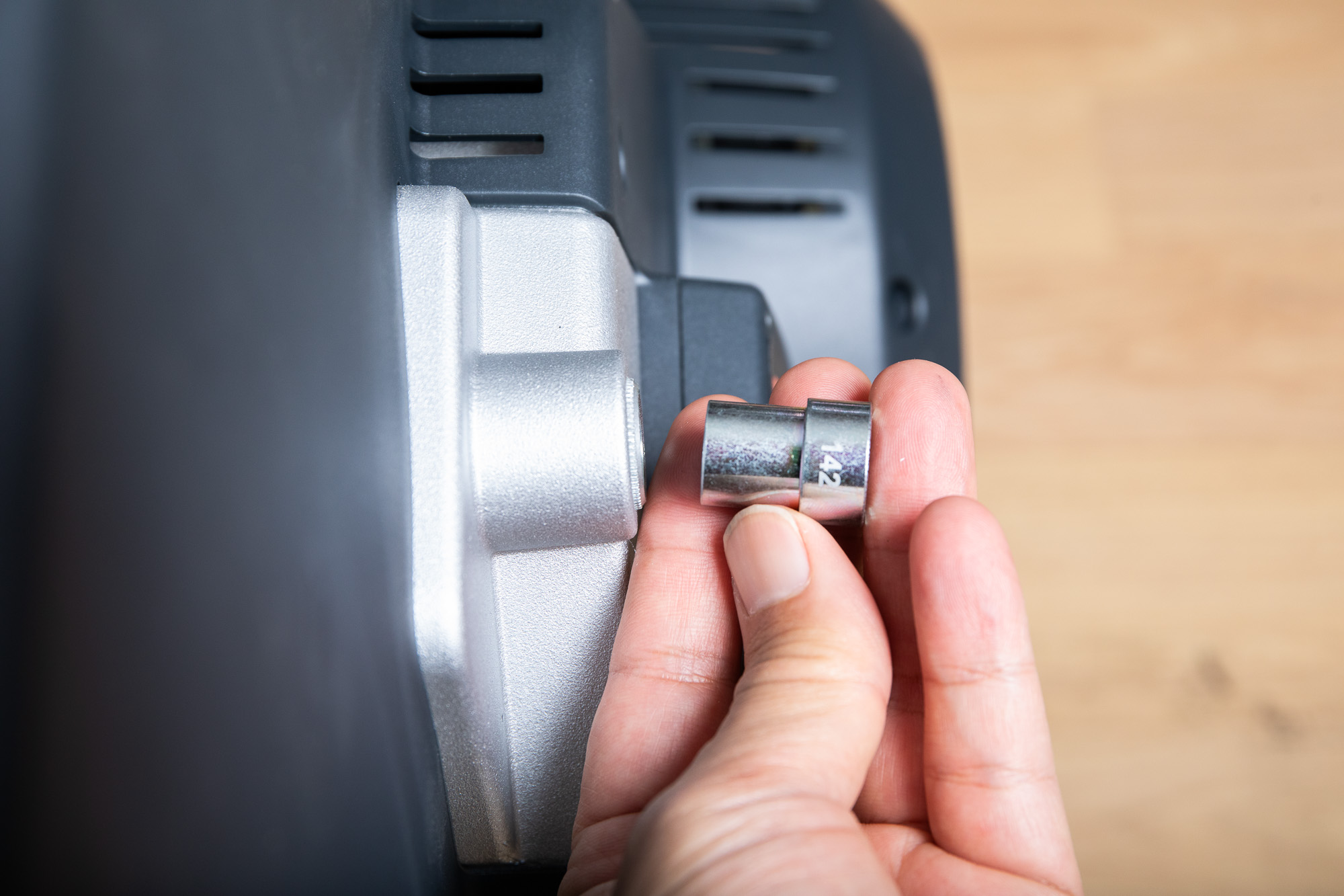 142mm 어댑터를 반대편에 끼워 쓰루액슬을 사용한다.
