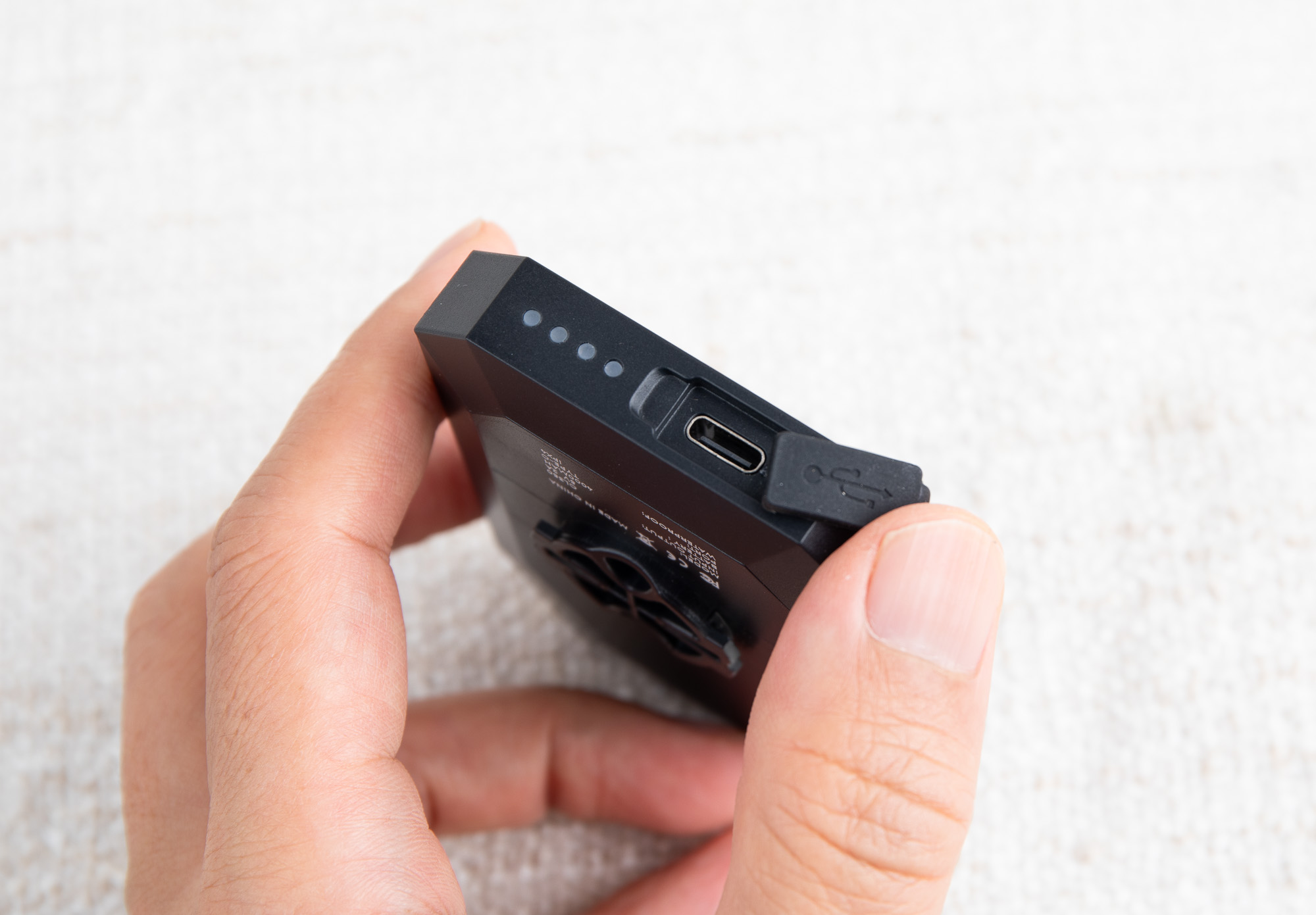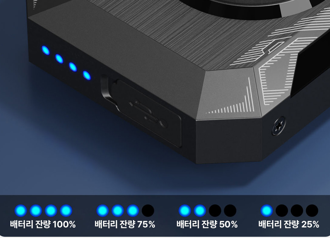USB-C 타입 단자로 자체 충전 및 외부 충전을 동시에 지원한다.