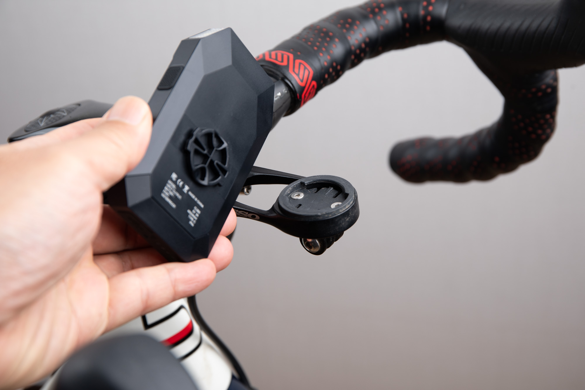 배터리 위에 가민 마운트 호환 속도계를 바로 장착할 수 있다.