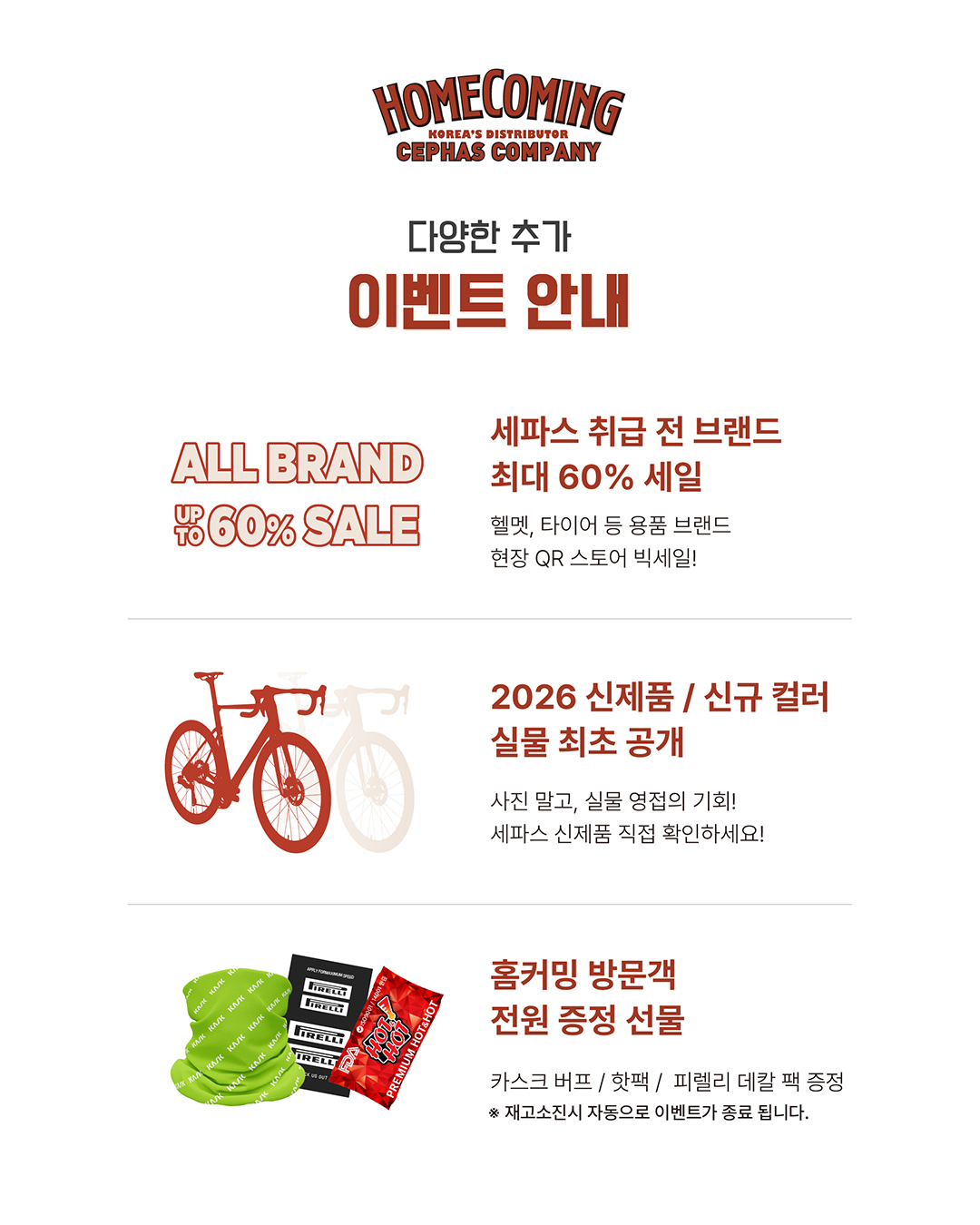 세파스가 2026년 사이클 및 러닝 시즌의 본격적인 시작을 알리는 '2026 세파스 홈커밍'을 개최한다. 이번 행사는 역대급 규모로 기획되어 오는 2월 21일(토)부터 22일(일)까지 양일간 서울 송파구에 위치한 복합문화공간 KARE(까레)에서 진행된다.