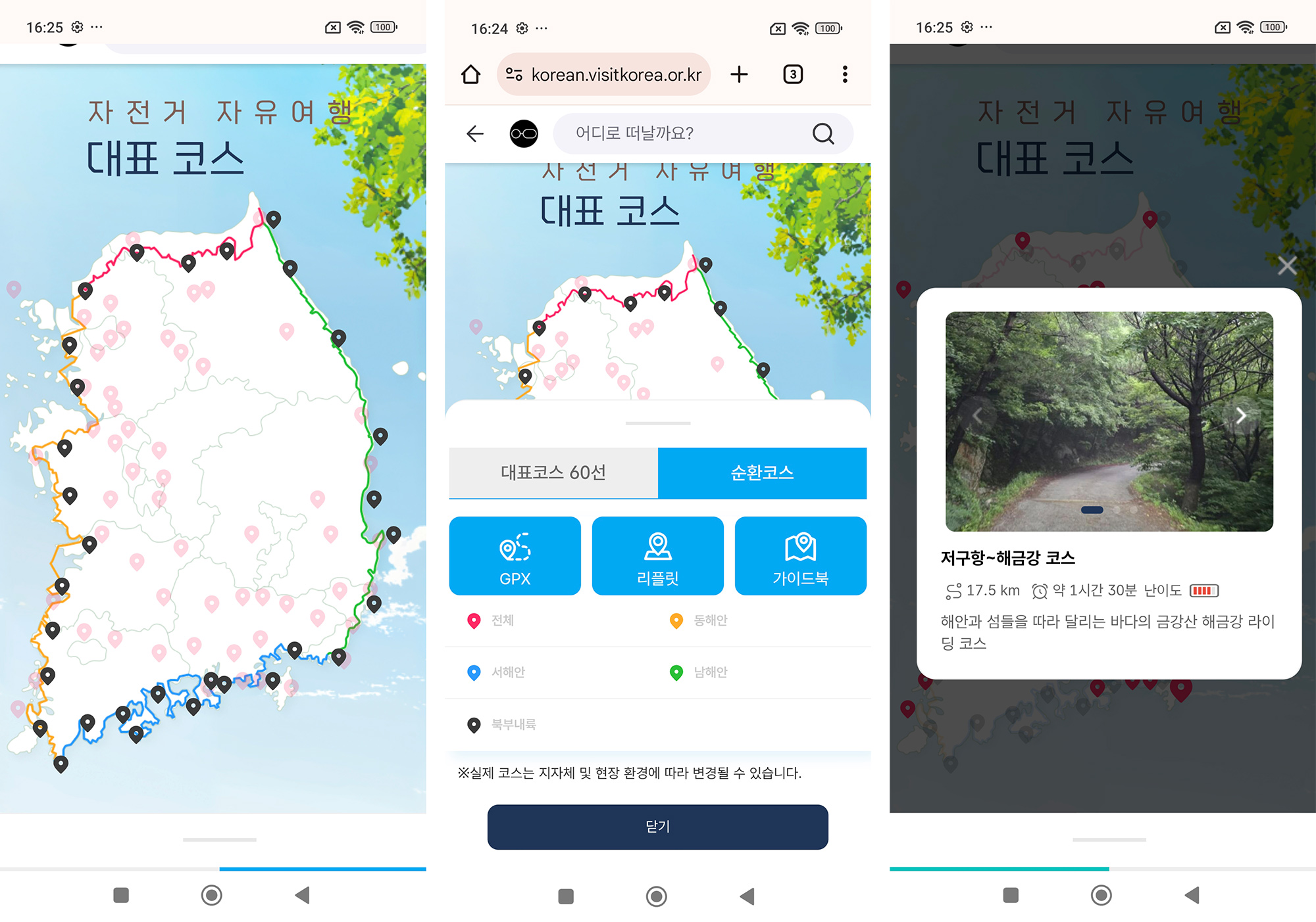 이번 순환코스는 우리나라 해안선과 국경을 따라 이어지는 2700km의 코스로 설계되었다. 코스에 대한 상세 내용은 책자 또는 웹사이트를 통해 확인할 수 있으며, gpx 파일을 다운받아 라이딩에 직접 적용할 수 있다.