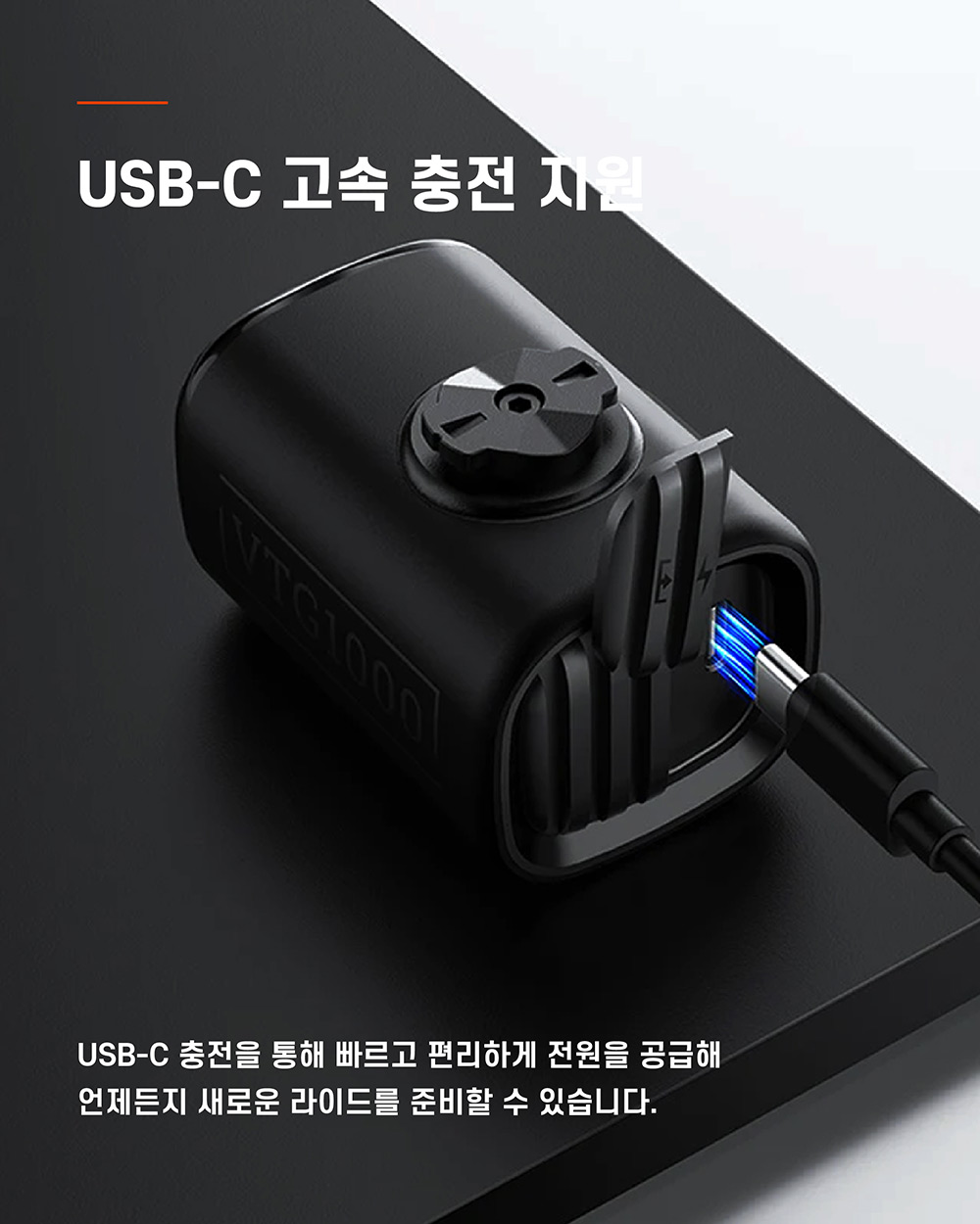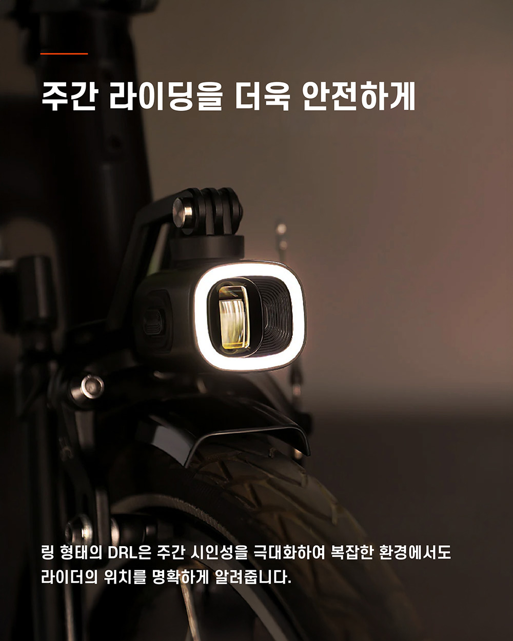 퀵릴리스 마운트가 적용되었기 때문에, 폴딩 시 간편하게 분리할 수 있도록 디자인한 것도 장점이다. 물론, IPX6 방수 기능과 알루미늄 하우징을 통한 내구성도 신뢰도를 높였고, USB-C 고속 충전으로 빠르게 라이딩을 준비할 수 있다.