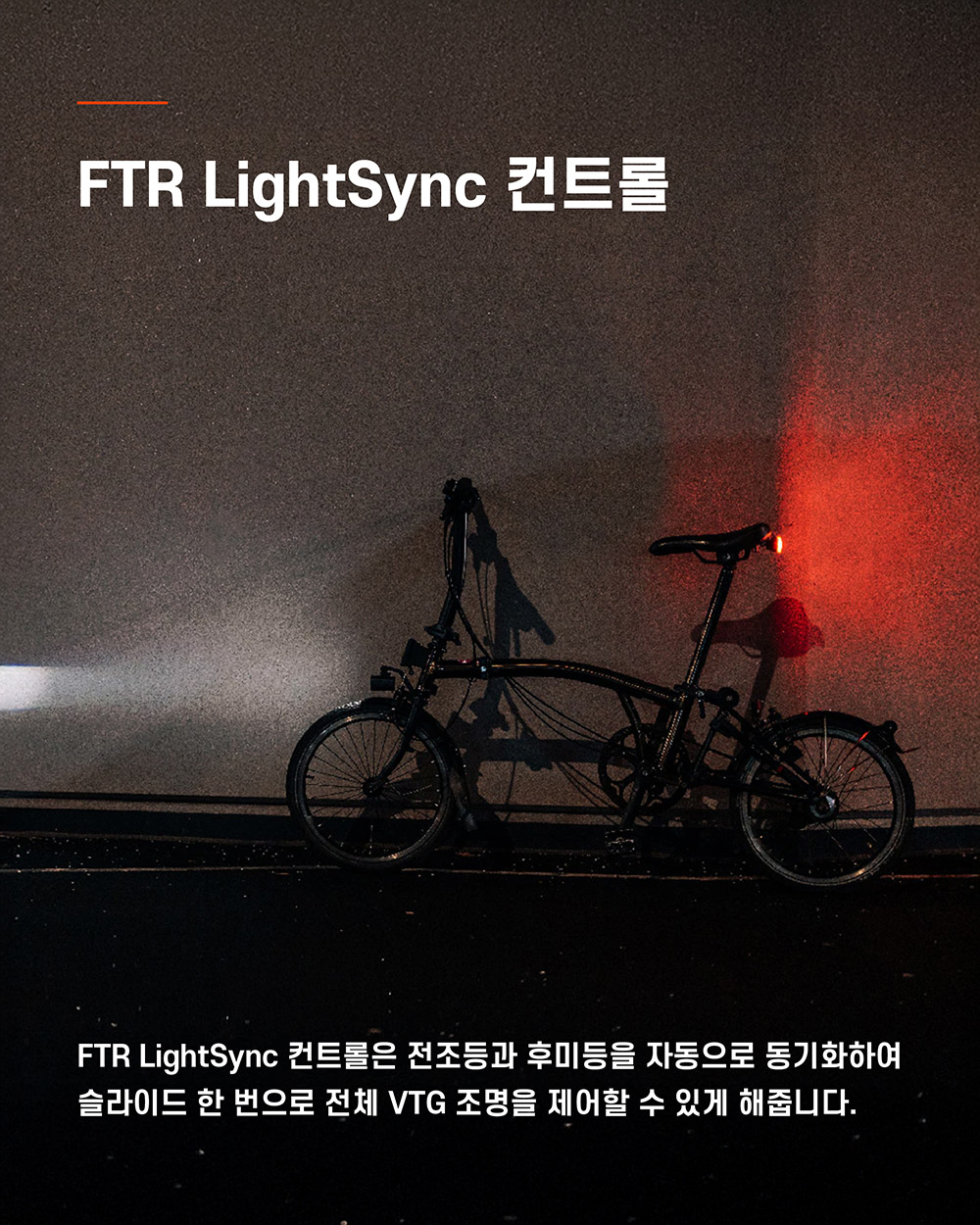 전조등과 후미등은 자동 동기화를 통해 동시에 켜고 끄는 것이 가능하며, 브롬톤 핸들바에 최적화된 설계로 손가락만으로 간편하게 조작할 수 있도록 디자인되었다.