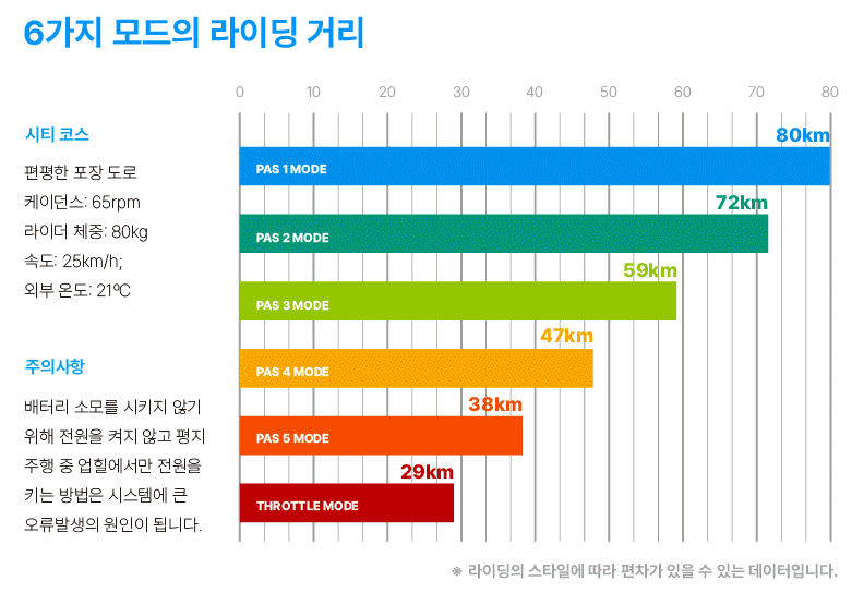 | 최대 주행거리 | 파스 약 80km(1단계 기준) 스로틀 약 29km |