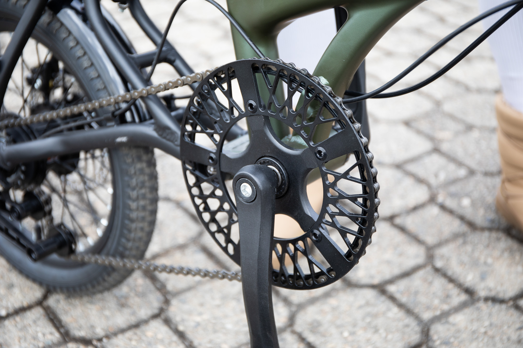 구동계는 시마노 넥서스 허브 내장형 변속 시스템을 채택했다. 외장형 디레일러에 비해 조금 더 무겁지만, 체인텐션너만 적용하면 되는 단순한 구조로 폴딩 바이크에 최적화 되었으며, 뛰어난 내구성과 함께 전기자전거의 만족도를 높여준다.