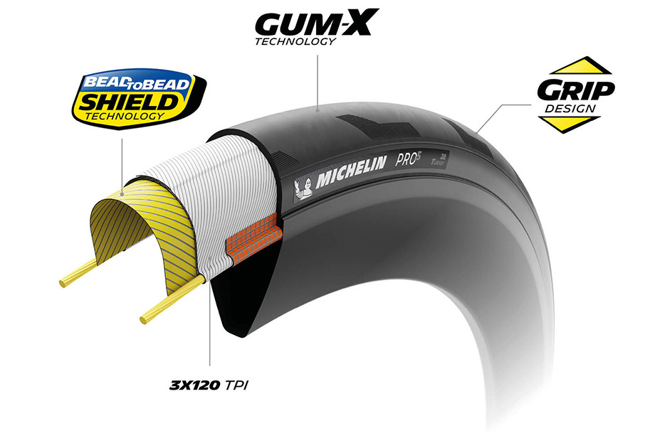 미쉐린 프로5 타이어는 로드 컴피티션 라인업에 속한다. 내구성에 집착하는 소위 훈련용 타이어와 달리 스피드를 잃지 않는 성능과 안정적인 내구성의 결합에 초점을 맞춘 타이어이기 때문에, 경쟁을 위한 컴피티션 타이어에 속한 것이다.