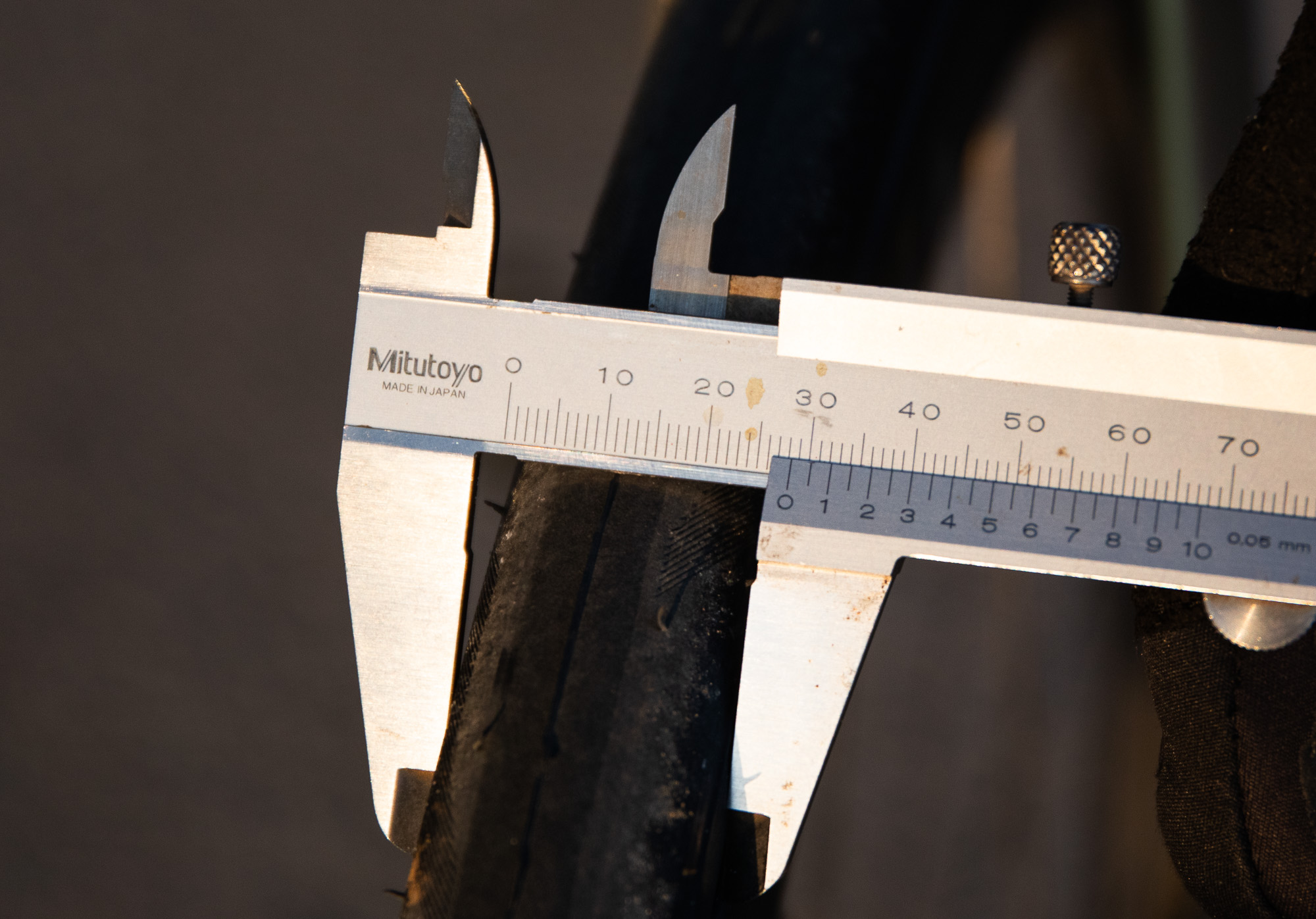 프로5 타이어의 경우는 30c 타이어 장착 시 실측 사이즈가 거의 30mm(림 내부폭 22.5mm)가 나타났다. 파워컵 28c를 장착했을 때 29mm 실측이 된 것과 비교하면, 확실히 케이싱에 따른 장착 시 실측 사이즈에서 다른 결과를 보인 듯 하다.