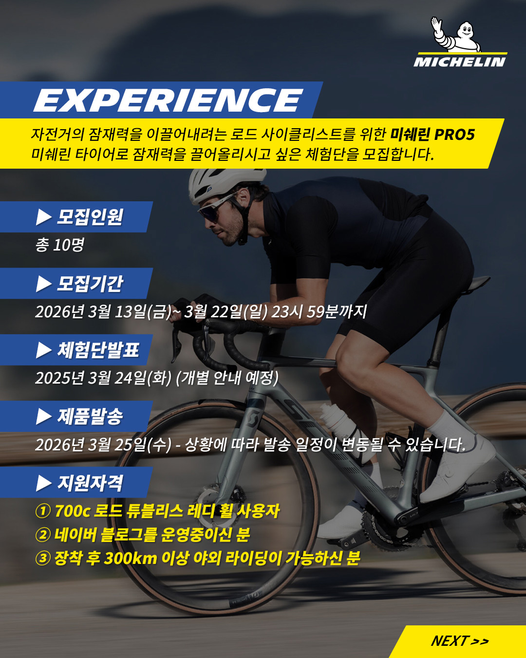 필수 해시태그: #미쉐린자전거 #MichelinBicycle #RideonMichelin #PowerYourself #미쉐린PRO5