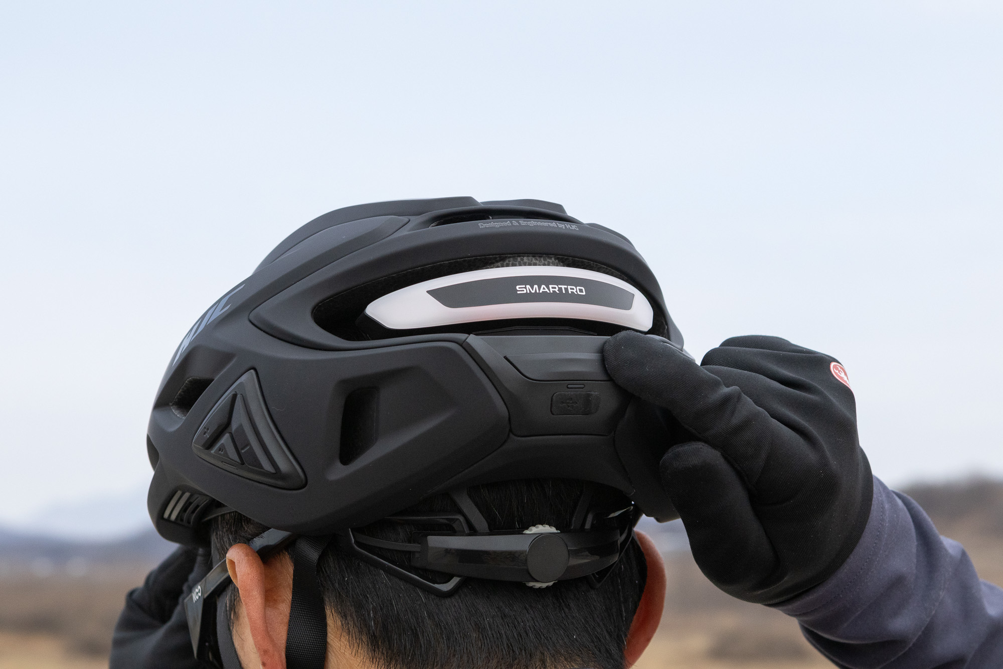 스마트로는 헬멧 후면부에 LED 후미등을 기본 탑재하여 이 부분을 스마트하게 해결했다. 헬멧에서 빛나는 LED 라이트는 뒤따르는 차량 운전자들의 눈높이와 거의 일치하여 탁월한 가시성을 발휘한다.