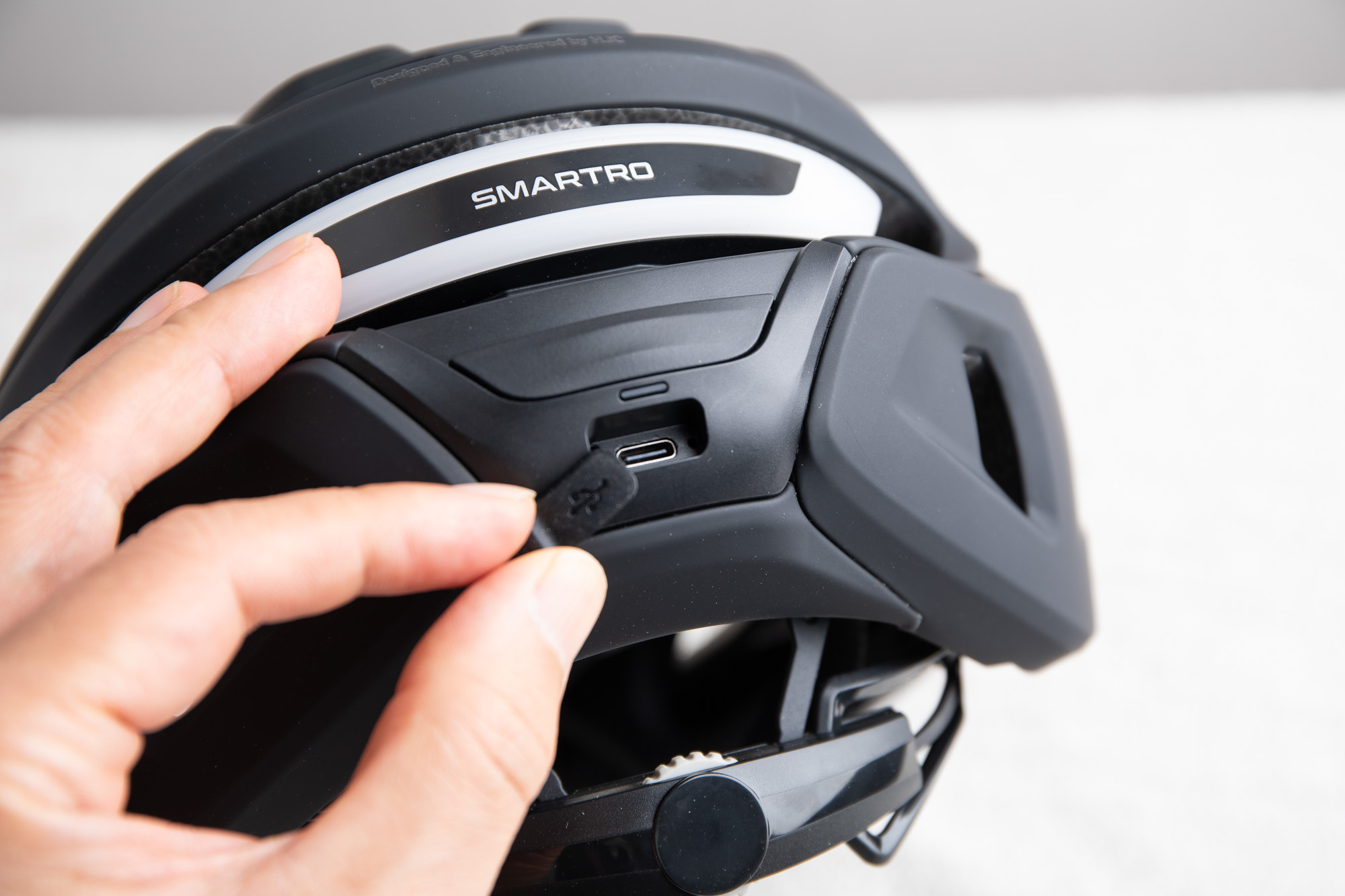 하지만 HJC 스마트로는 통신 기기가 장착되어 있다는 것을 깨닫기 어려울 만큼 미니멀한 헬멧의 외관을 자랑한다. 자전거 헬멧을 공기역학적 실루엣을 그대로 차용하면서도, 내부의 복잡한 스피커와 마이크, 배터리, 통신 모듈을 쉘 안으로 완벽하게 매립했다.