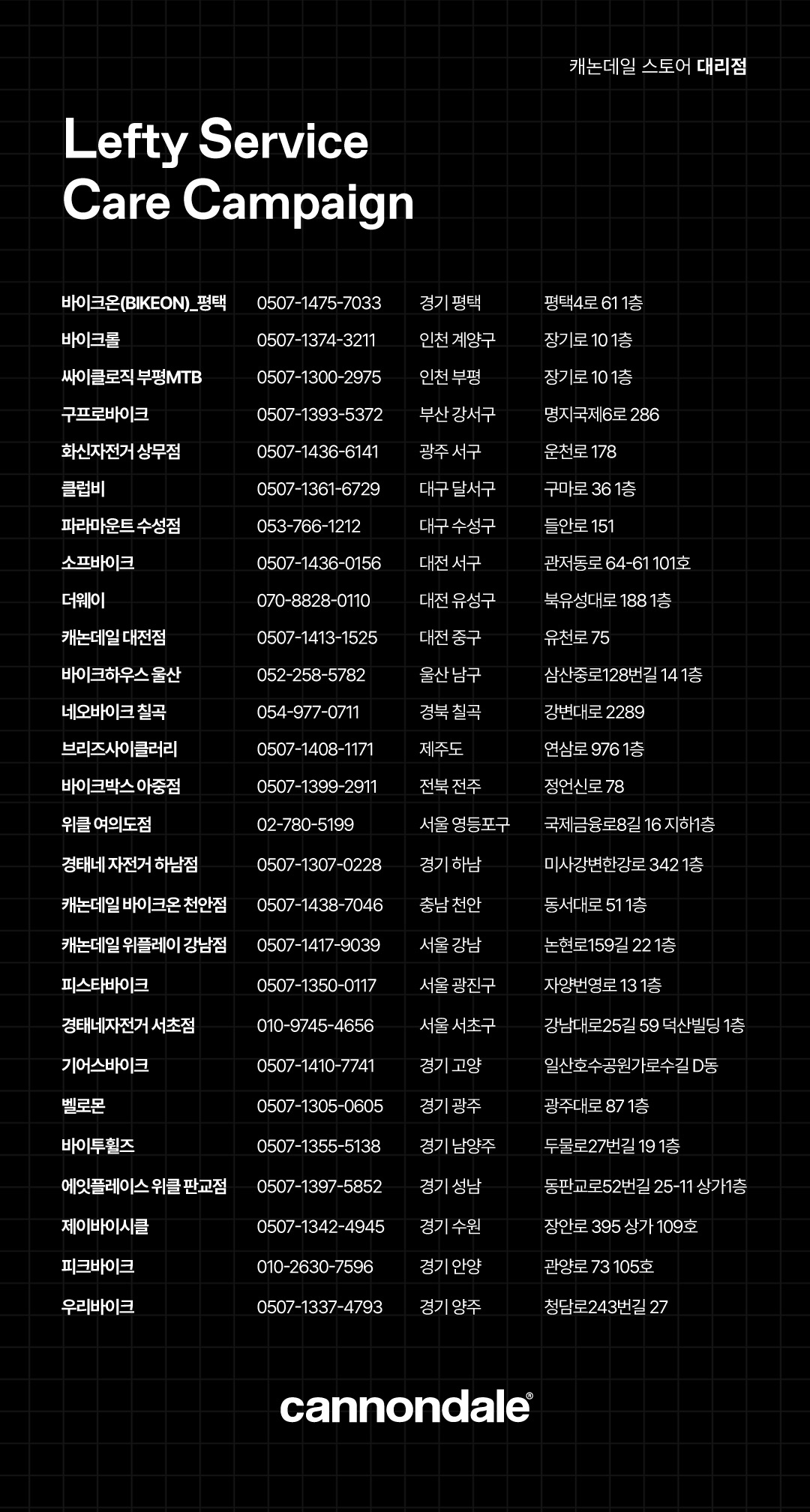 서비스 접수 및 점검 의뢰는 전국 캐논데일 브랜드 스토어 및 공식 파트너 스토어를 통해 진행된다. 정기적인 메인터넌스를 계획하고 있던 레프티 포크 사용자들에게 최적의 서스펜션 컨디션을 확보할 수 있는 기회가 될 전망이다.