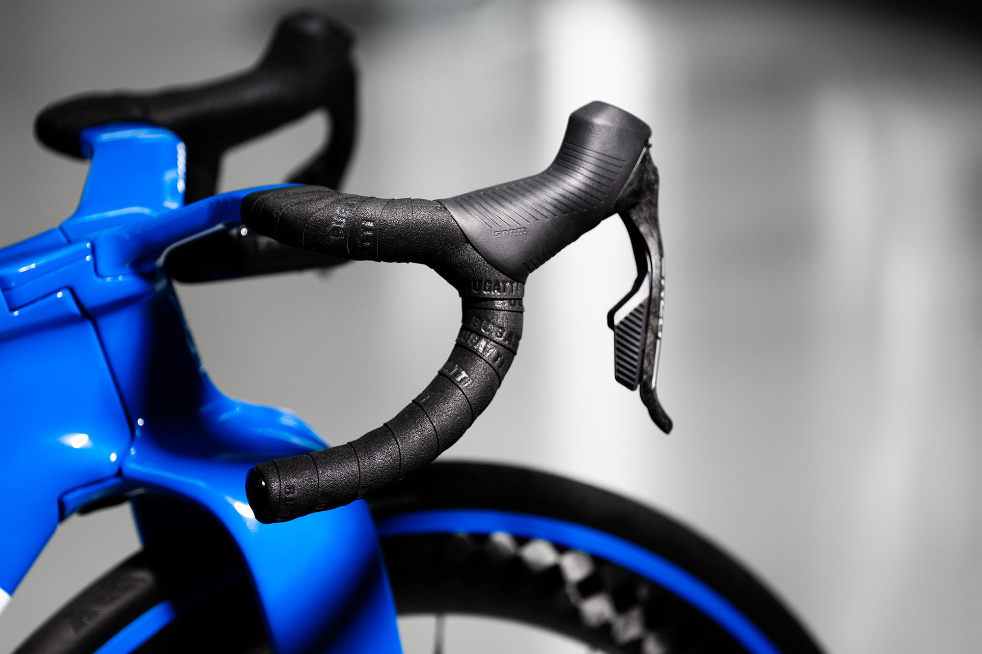 ‘부가티 팩터 원’의 핵심은 UCI(국제사이클연맹)의 설계 규정을 과감히 탈피하여 공기역학적 효율성을 극한으로 끌어올린 프레임워크에 있다. 와이드 포크 스탠스(Wide fork stance)를 채택해 공기 저항 수치를 획기적으로 낮췄으며, 리딩 에지(Leading edge) 주변의 공기 흐름을 최적화하여 고속 주행 시 전면부 안정성과 조향 정밀도를 크게 향상시켰다.