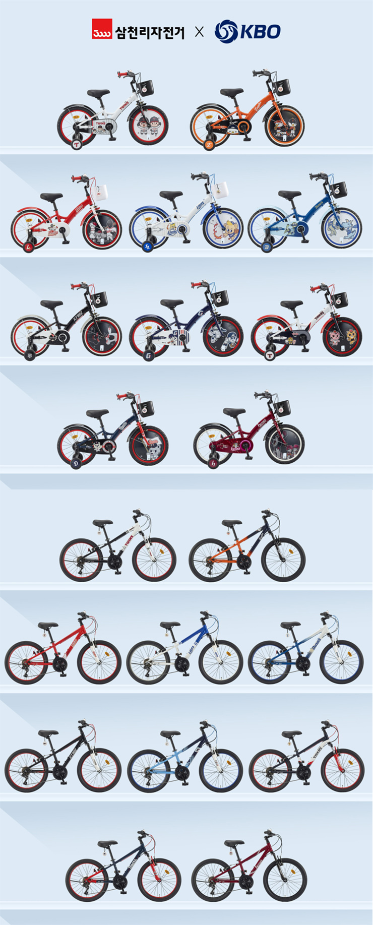 삼천리자전거가 2026 KBO 리그 개막을 앞두고 리그 소속 10개 구단의 정체성을 투영한 어린이용 자전거 20종을 전격 출시했다. 이번 신제품은 야구 팬들의 소망을 담은 디자인과 안정적인 주행 성능을 결합해, 가족이 함께 즐기는 야구 팬 문화를 라이딩 영역까지 확장한 것이 특징이다.