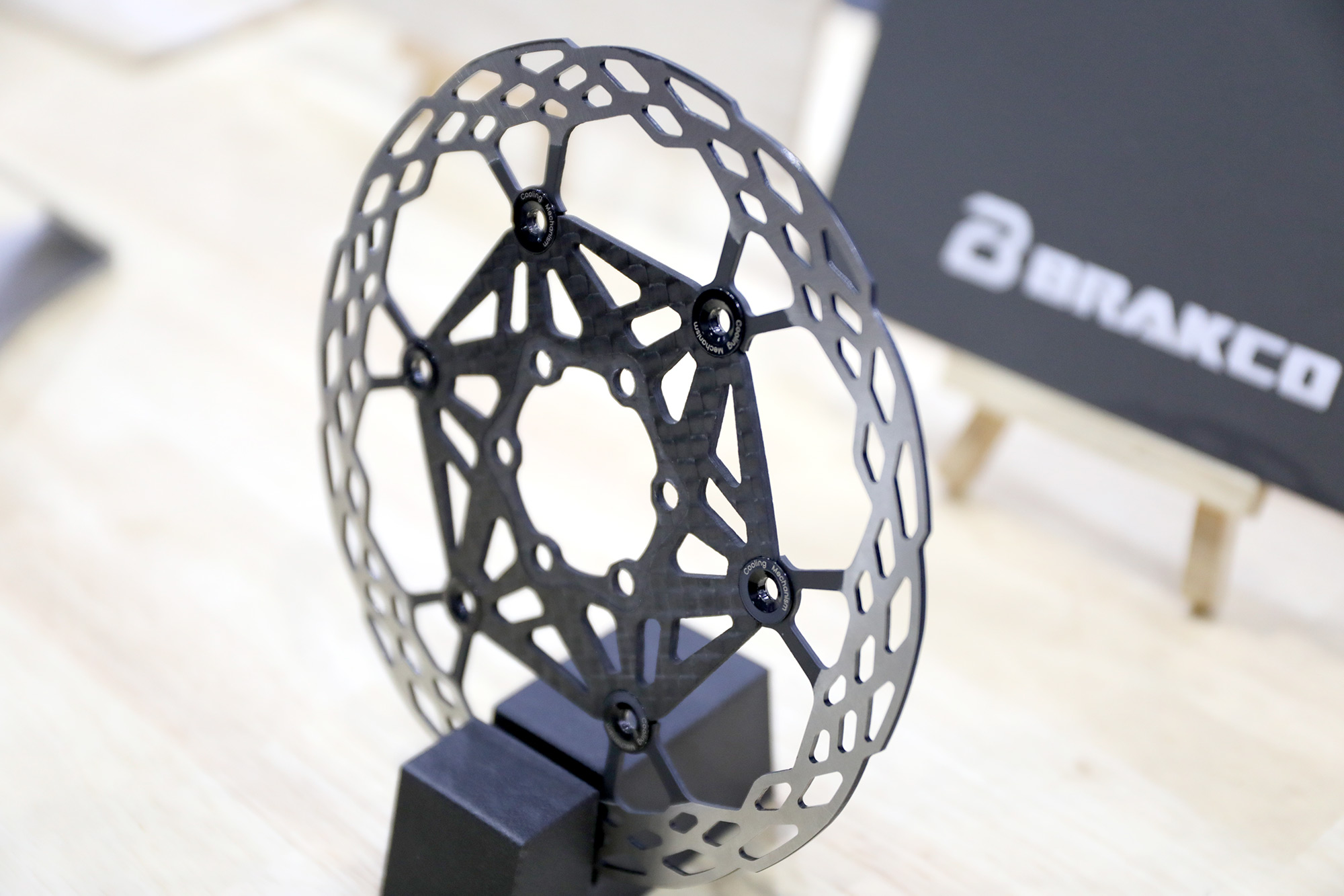 타이베이 사이클(Taipei Cycle) 전시회에 참가한 브레이크 전문 제조사 브라코(Brakco)는 카본과 그라핀을 적용한 새로운 디스크 브레이크 로터를 선보였다.