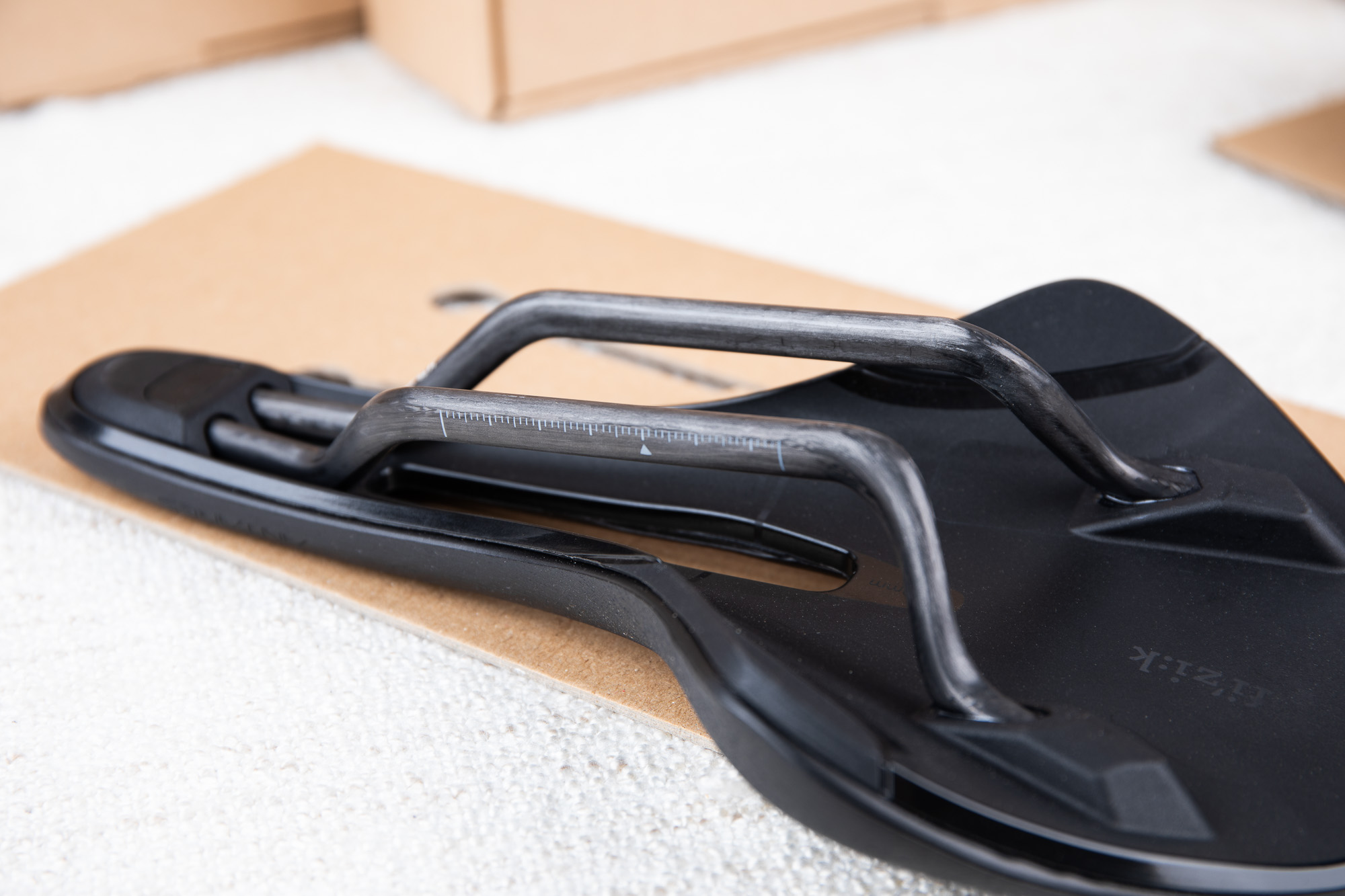플랫폼의 하부 구조를 지탱하며 자전거의 시트포스트와 결합하는 부위에는 초강성 브레이디드 카본 레일(Braided Carbon Rails)이 적용되었다. 스틸이나 티타늄(K:ium) 레일을 사용하는 하위 등급의 모델들과 달리, R1 Light의 카본 레일은 안장 전체의 총중량을 획기적으로 낮추는 동시에 반응성을 극대화하는 핵심 골격이다.