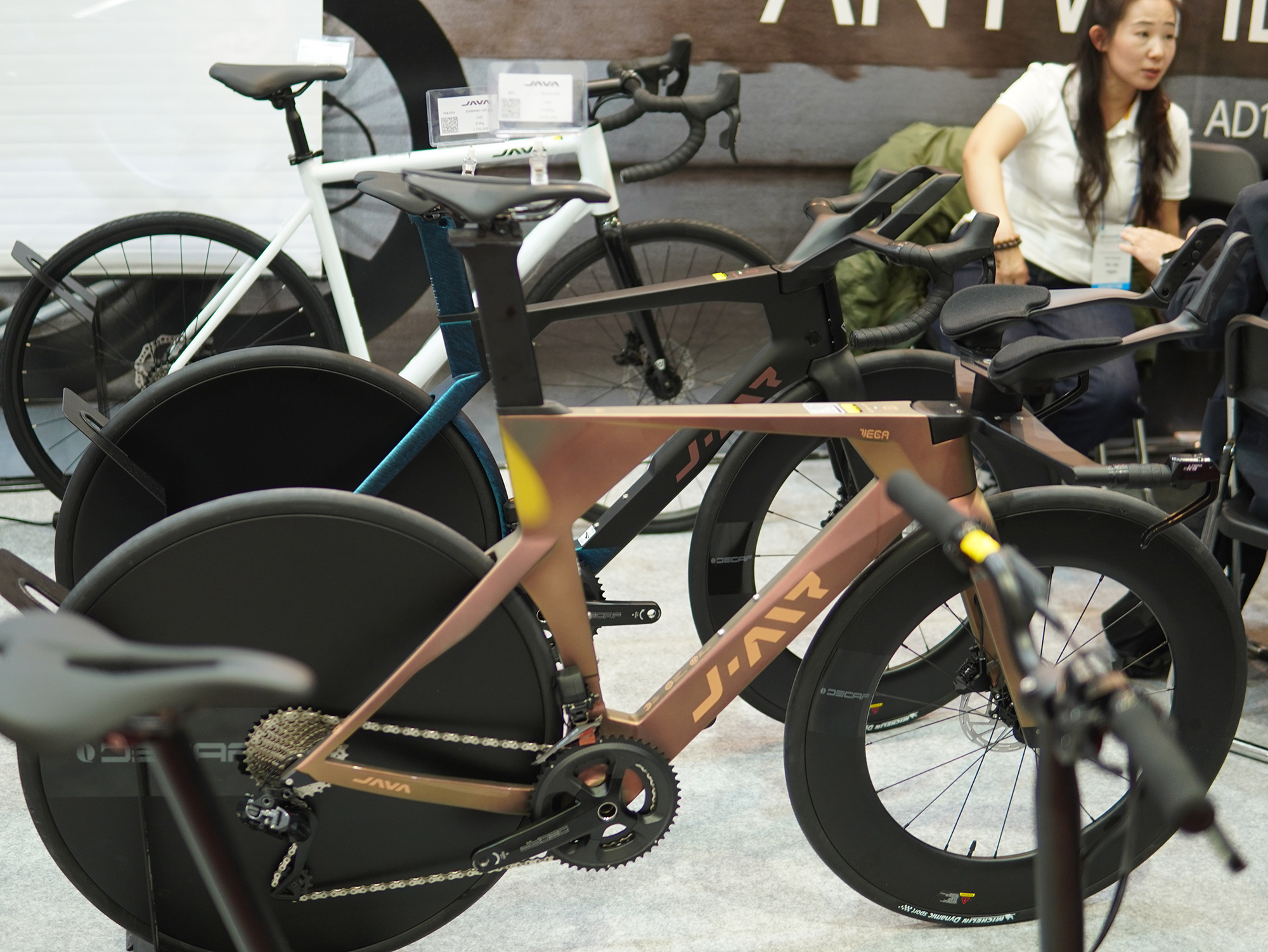 자바바이크는 이번 전시에서 에어로 로드바이크와 TT 바이크 등, 카본 프레임 기반의 신모델들을 선보였다. 다양한 라인업과 트렌디한 프레임 컬러를 적용한 모델들은 헬스 위주의 전시장에서 자전거 동호인들의 시선을 붙잡는 유일한 볼거리였다.