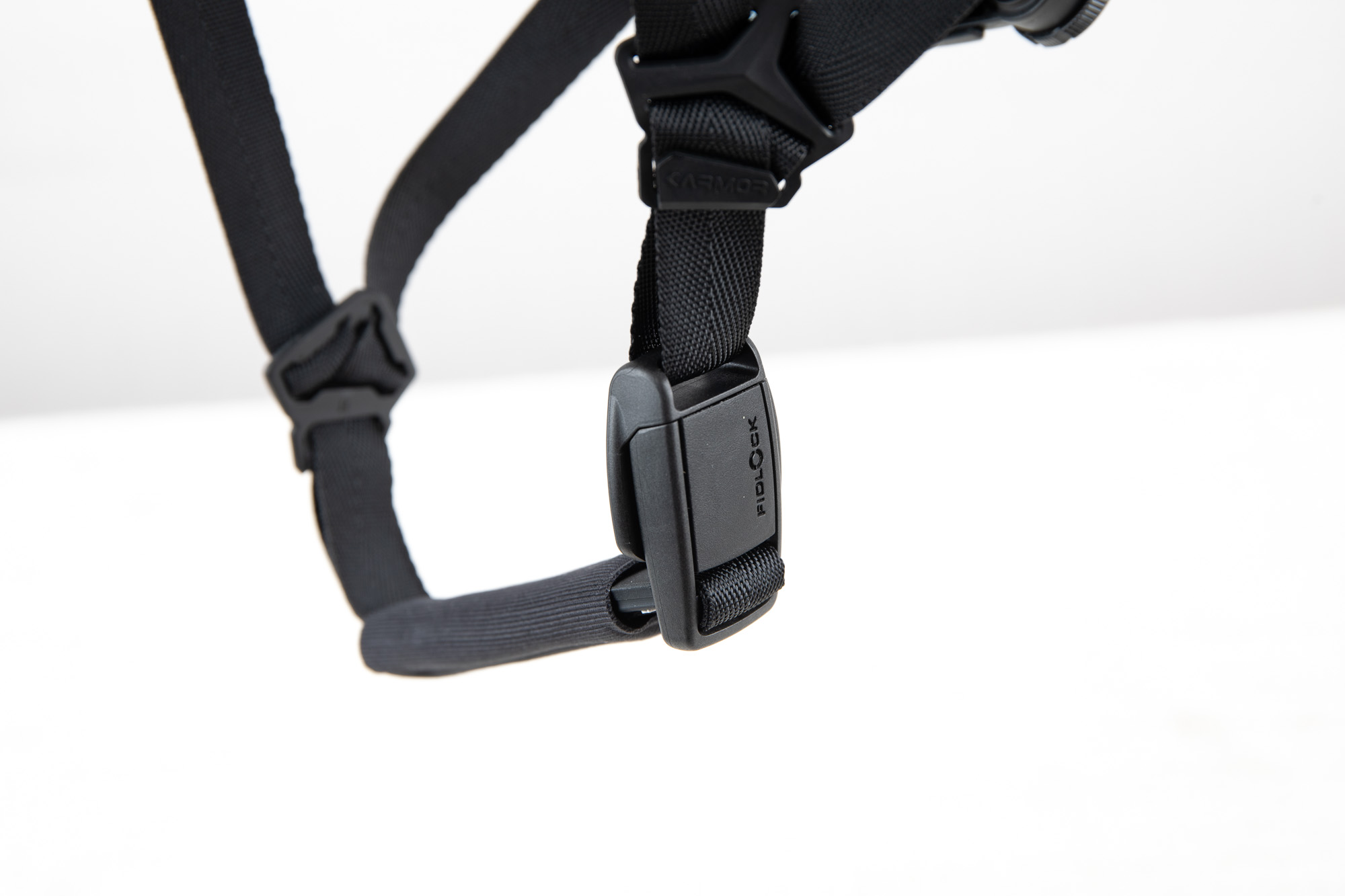 턱끈을 체결하는 버클에는 자석의 자력과 기계적 체결을 결합한 피드락(Fidlock) 마그네틱 버클 시스템이 적용되었다.