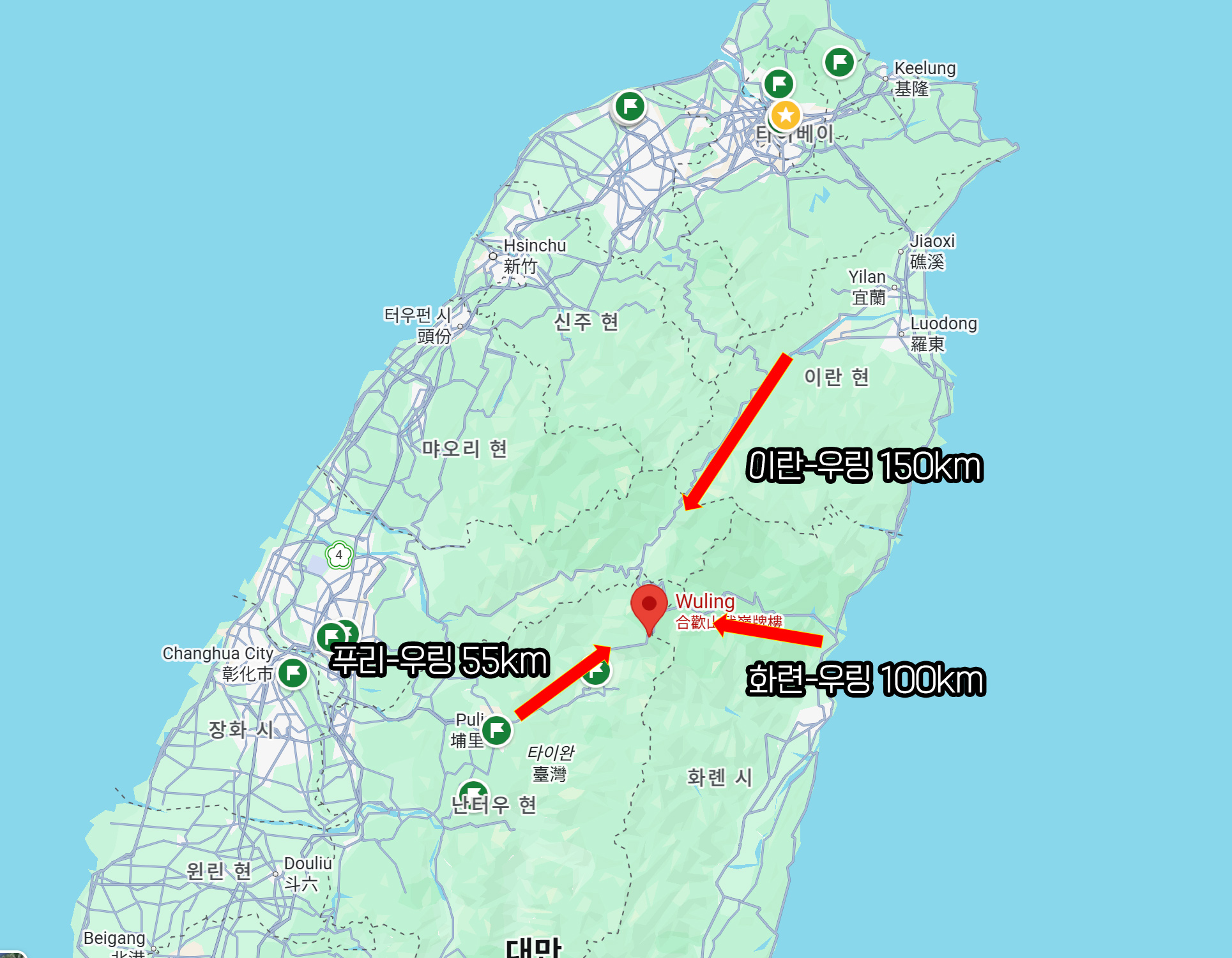우링을 오르는 업힐은 크게 3개로 구분되는데, KOM 챌린지로 유명한 동쪽(화련-우링), 그리고 가장 많은 라이더들이 찾는 서쪽(푸리-우링), 마지막으로 가장 긴 업힐 코스인 북쪽(이란-우링) 코스가 있다.