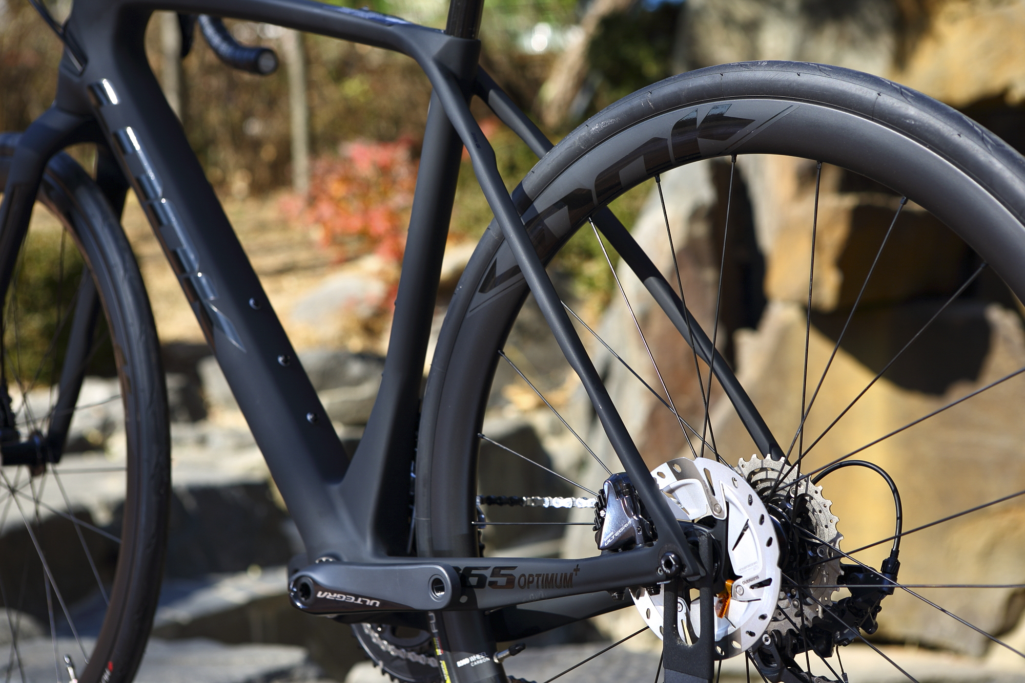 765 옵티멈 플러스는 하이모듈러스(HM)와 하이레지스턴스(HR) 카본 파이버 등으로 제작되어 강성과 순응성이 적절히 배분되어 있어 컴포트한 라이딩 품질을 보여준다.