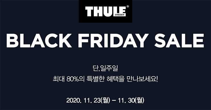 툴레코리아(THULE)는 블랙프라이데이 기간을 맞이하여 가방 및 액세서리 제품을 11월 30일까지 최대 80% 할인 판매한다.