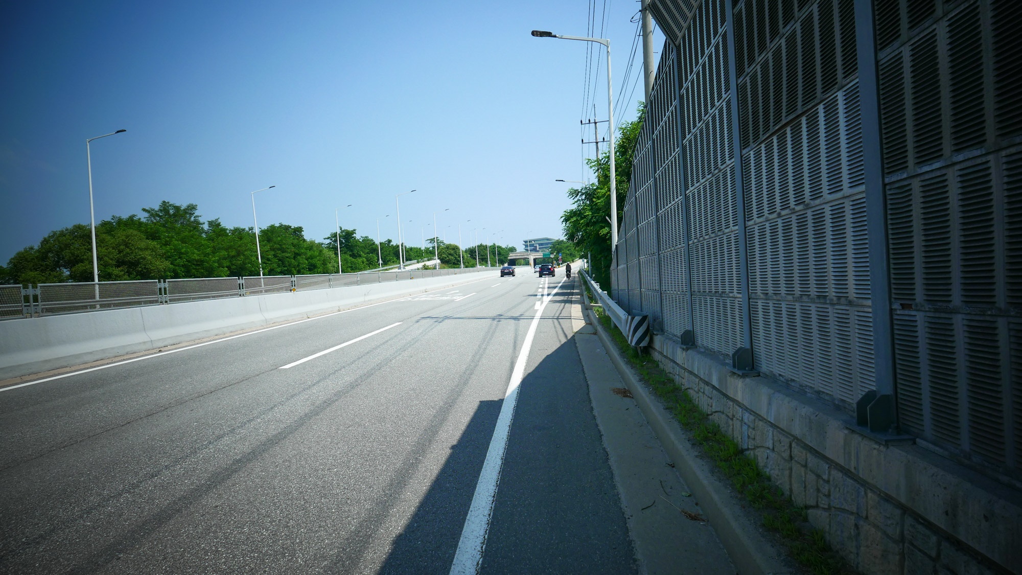 차와 사람이 적고 도로폭이 넓어서 여유있는 라이딩에 좋다.