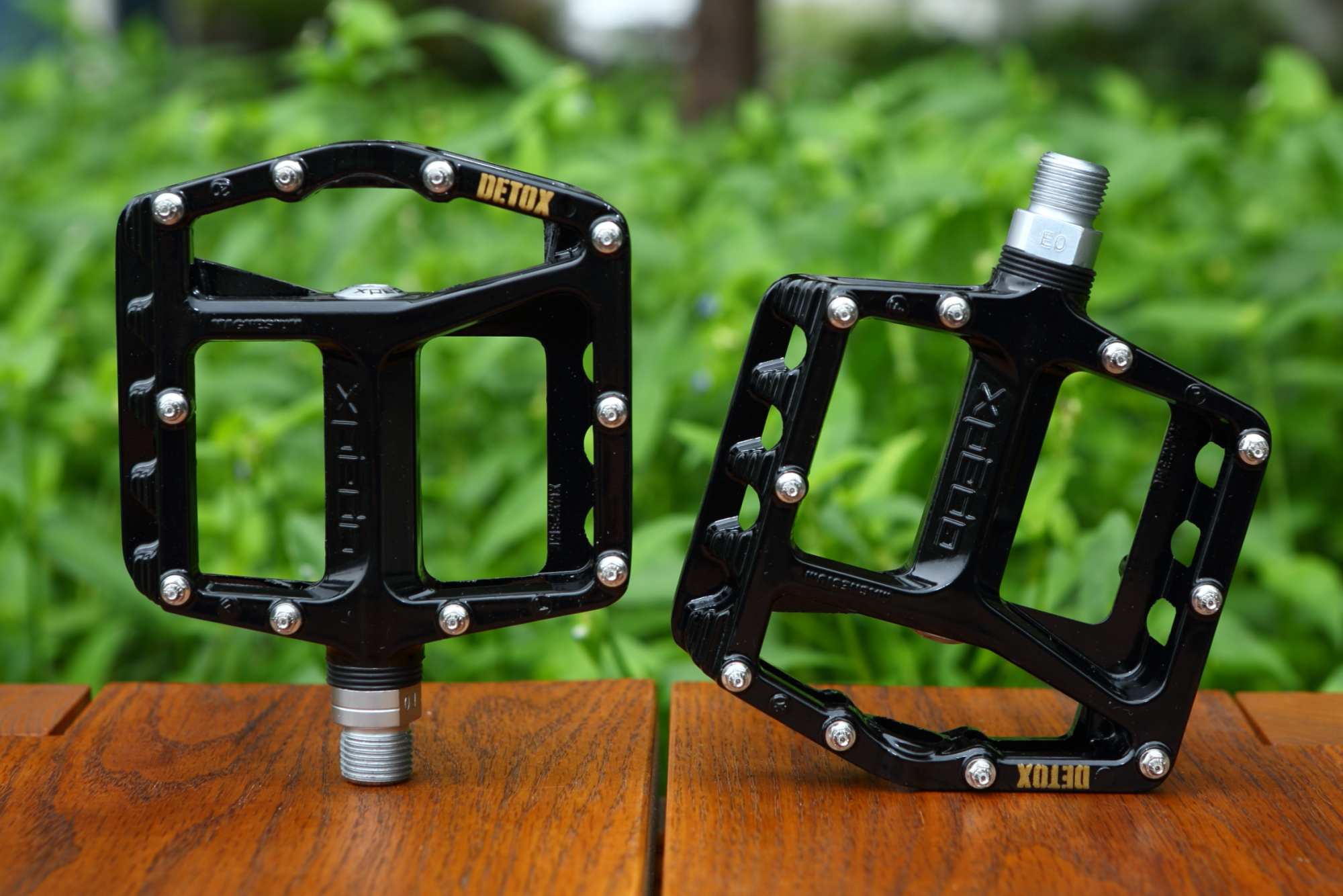 디톡스는 스프리보다 강한 내구성과 접지력이 필요한 라이딩을 위한 페달로 스프리보다 조금 두껍고, 340g으로 무겁다. 마그네슘 바디에 강력한 접지력을 위해 화산처럼 솟은 볼케이노 핀이 한 면에 10개가 장착된다.
