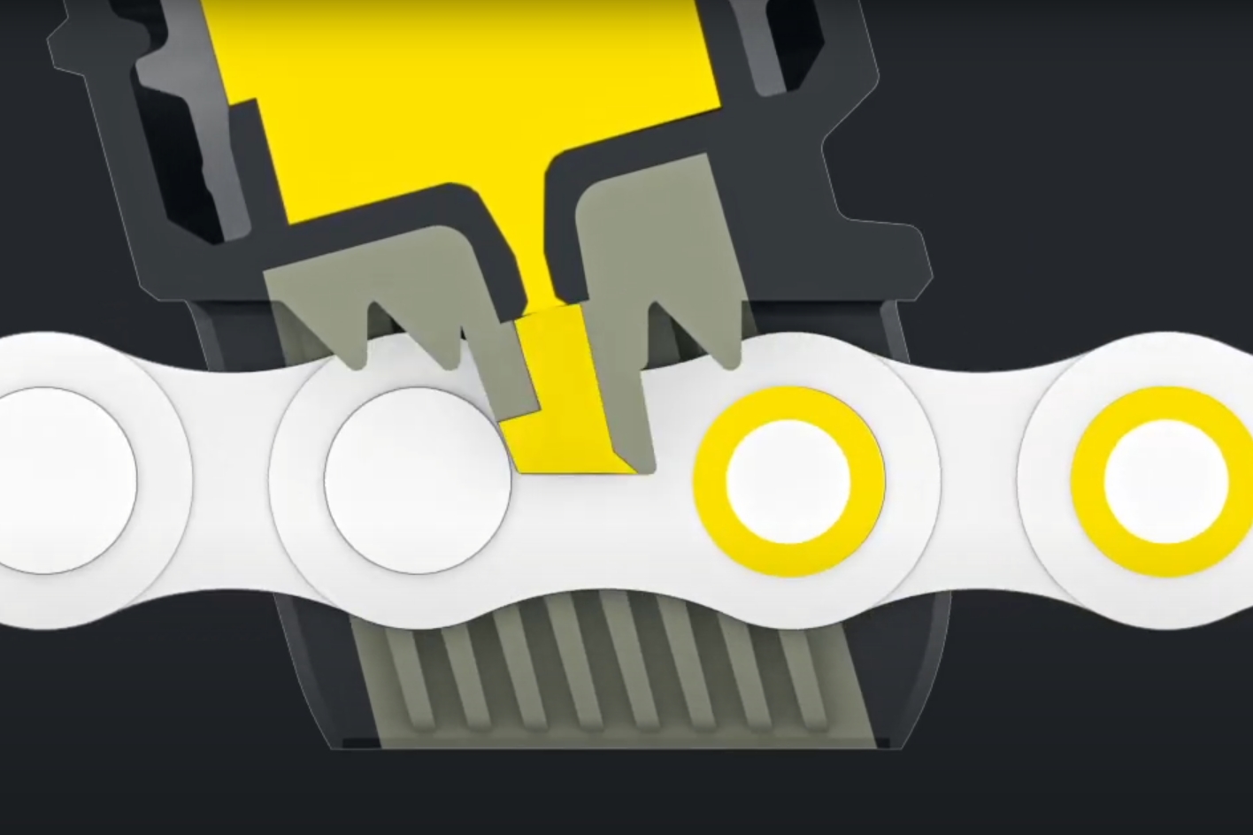 체인루브는 표면장력에 의해 롤러에만 도포되어 최적의 효과를 볼 수 있다.