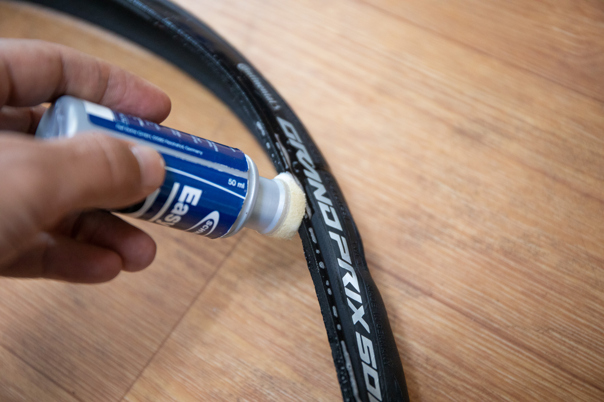튜블리스 타이어는 장착 시 윤활제를 비드에 꼭 바르고 하는 것이 중요하다. 비드의 기밀성이 높다보니 장착 후 공기를 넣어도 림 안쪽까지 잘 안착되지 않는 경우가 많기 때문이다.