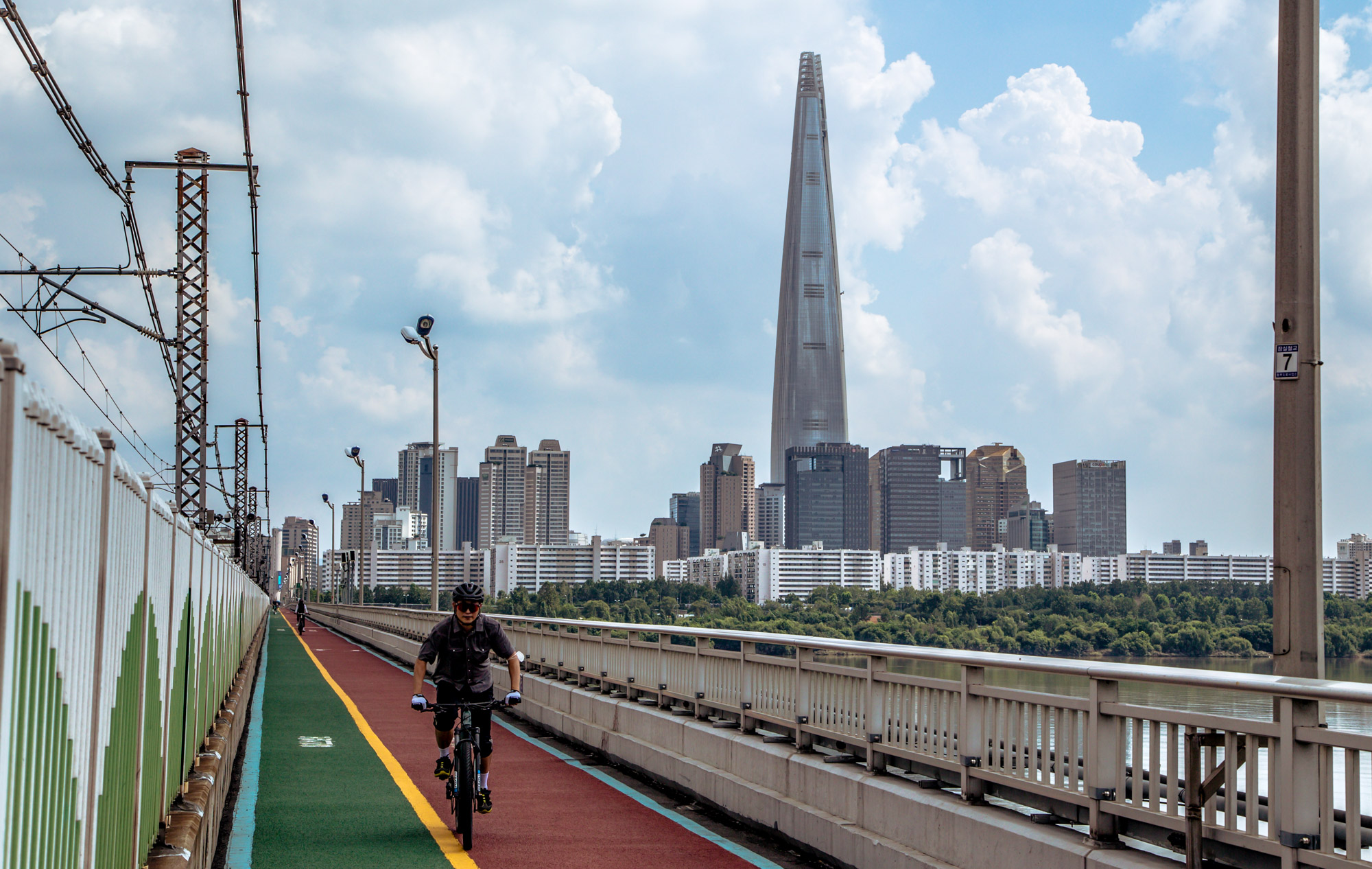 자전거 통행이 매우 용이해서 많은 라이더가 잠실철교를 이용한다.