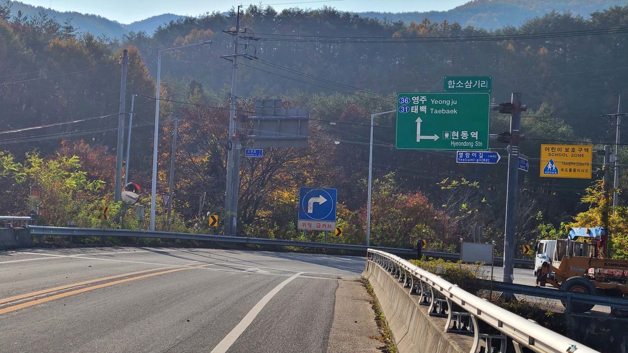 일월재에서 8시 방향으로 좌회전한다. 직진하면 봉화터널로 내려간다.