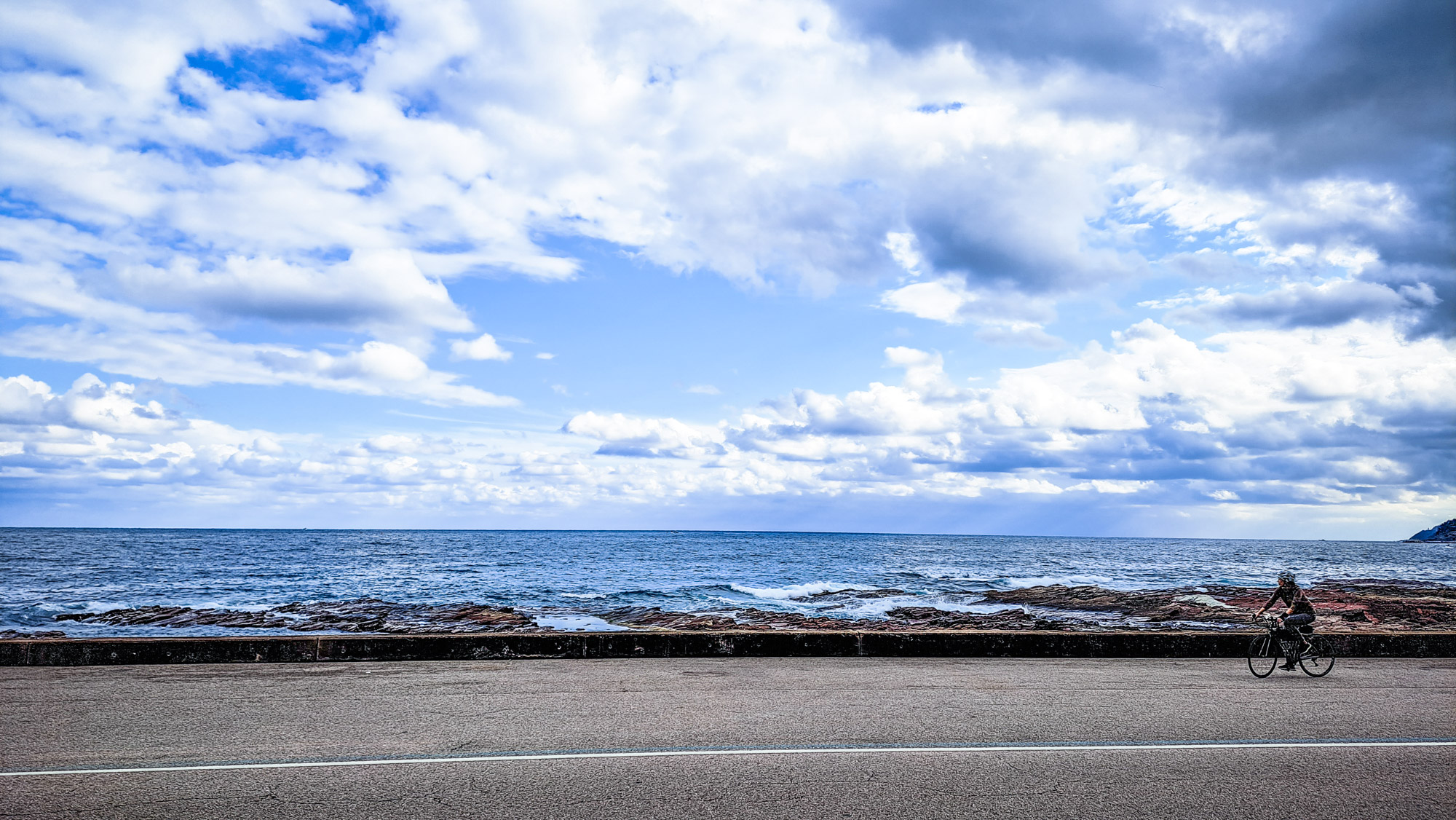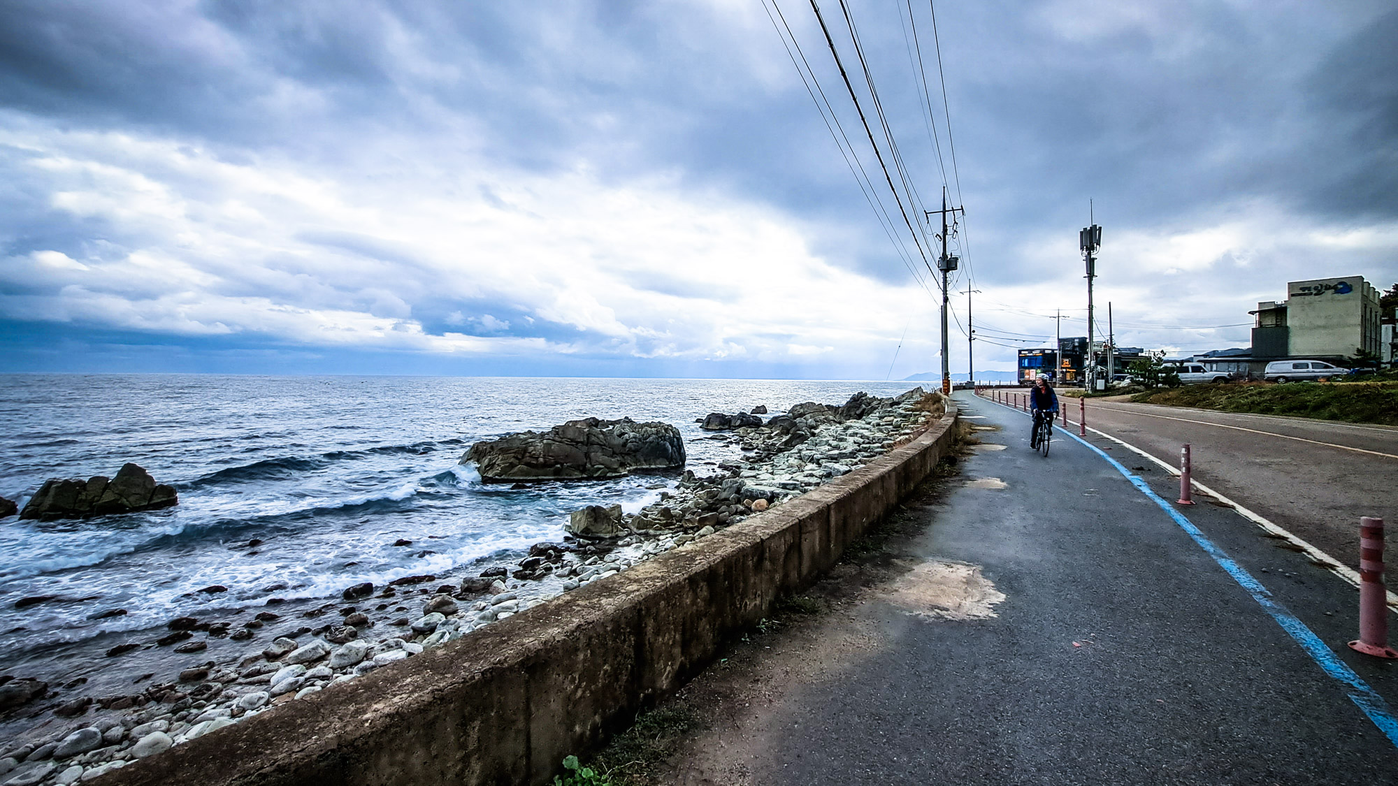 파도가 제주도와 다르게 거세서인지 웅장함은 더욱 크다. 잡생각마저 달아나게 만드는 거친 파도소리와 도로 위를 넘나드는 파도의 위력은 위협적이기까지 하다. 하지만 하얗게 부서지는 파도 위로 자욱하게 피어 오른 물안개의 몽환적인 풍경에 힘듦을 잃고 무의식 중 페달링을 하게 만든다.
