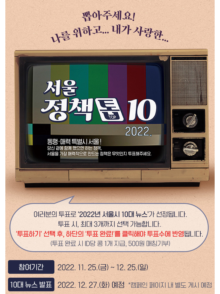 투표 하기 : https://happybean.naver.com/campaign/seoulnews2022