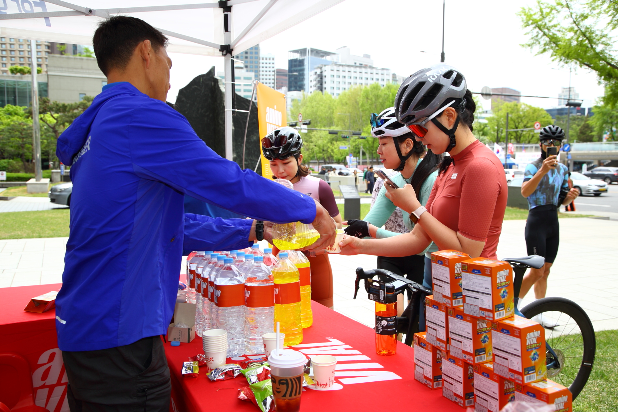 아미노바이탈은 방문한 라이더들에게 구연산 워터를 보급했다.
