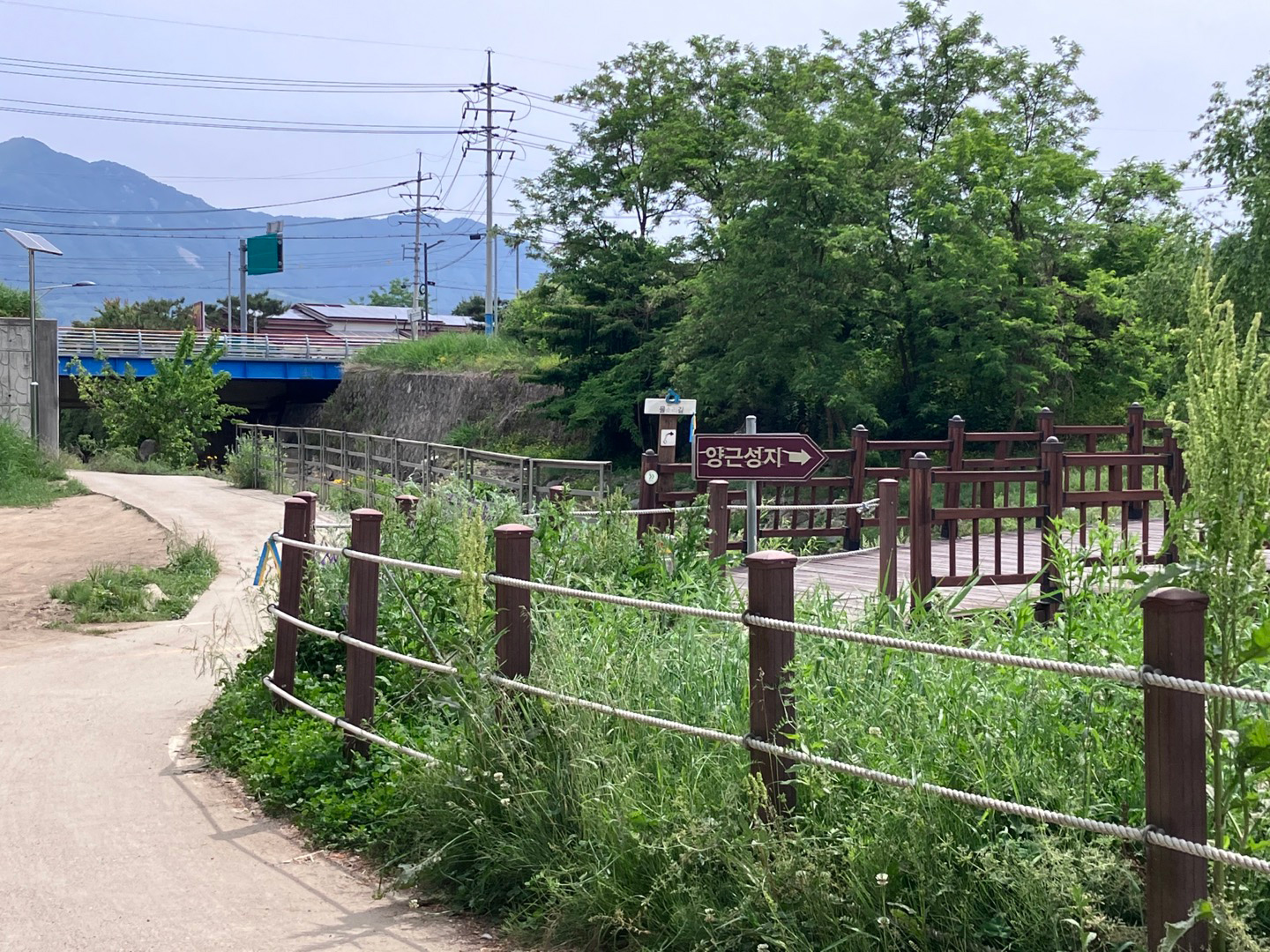 육교 왼쪽으로 가면 국도와 만나서 매우 위험하다.