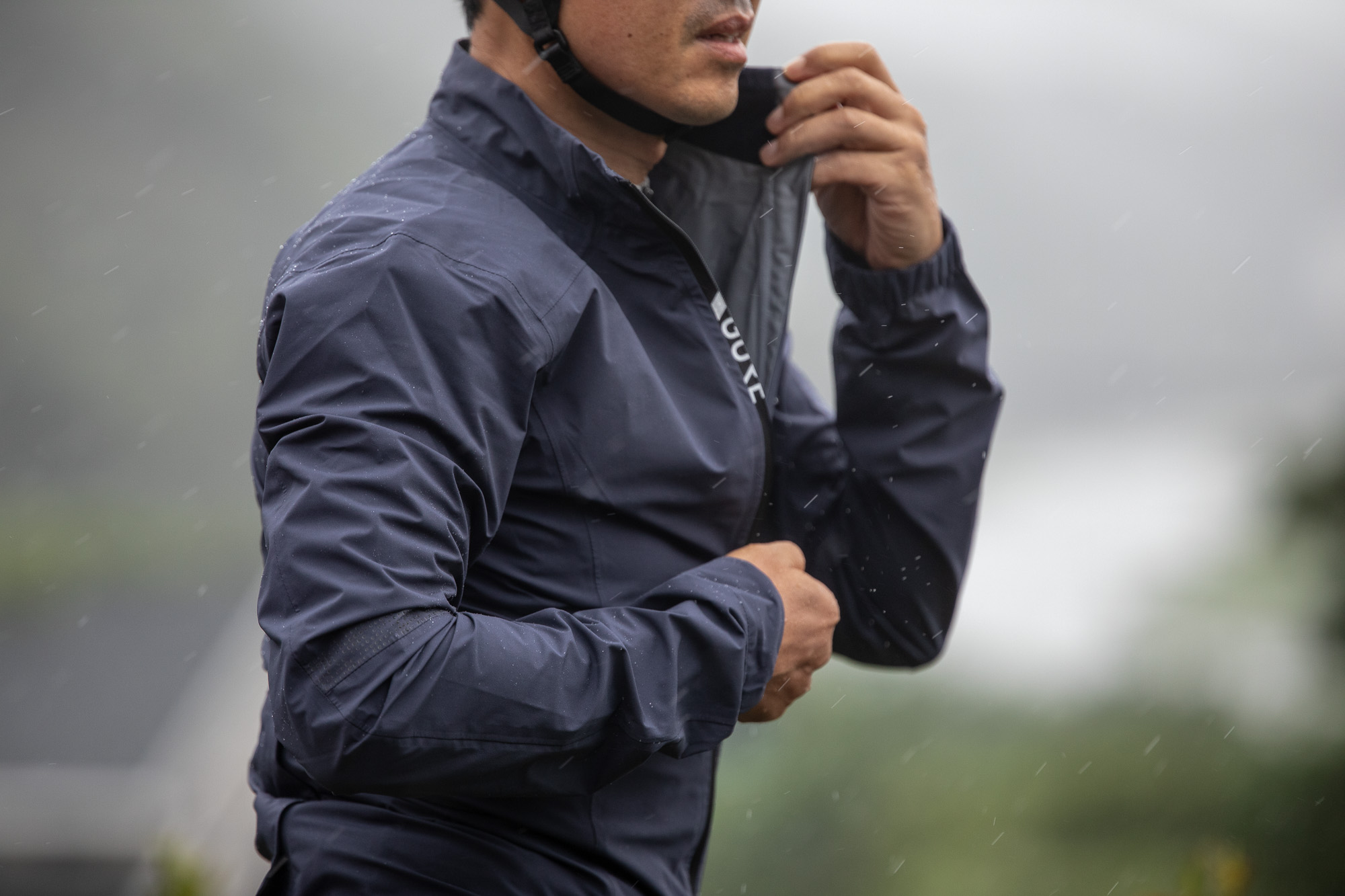 입김이 피어오르는 기온과 비가 오는 날씨에도 라이딩을 지원하는 고어웨어 사이클링 재킷